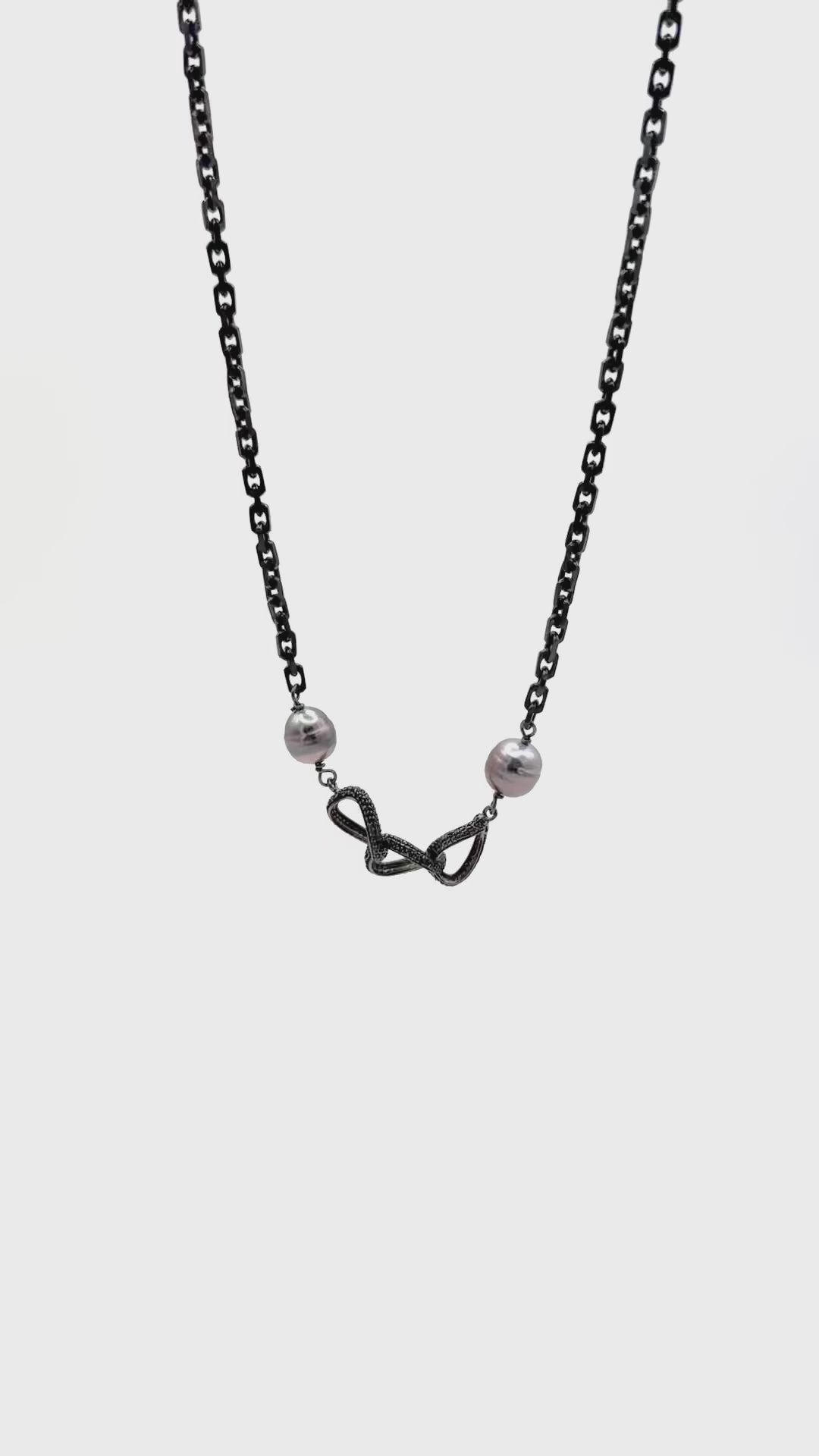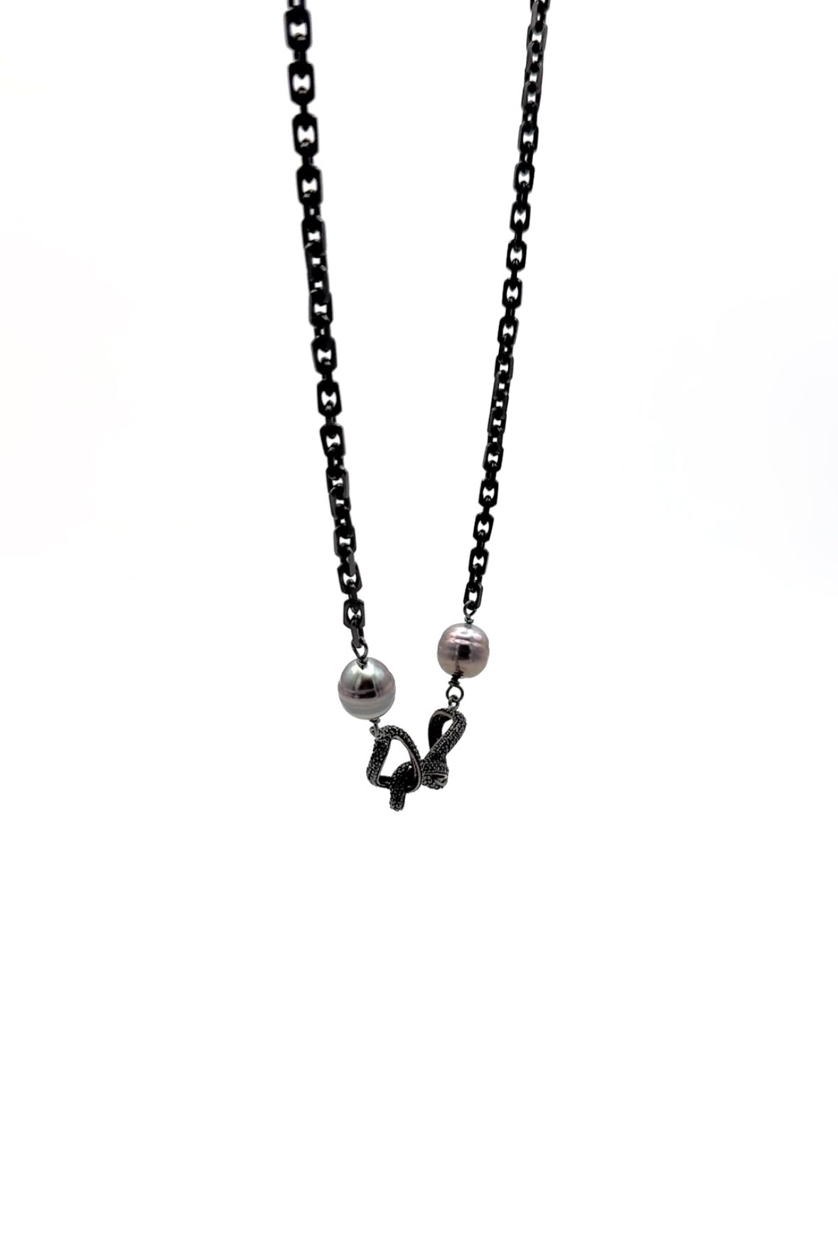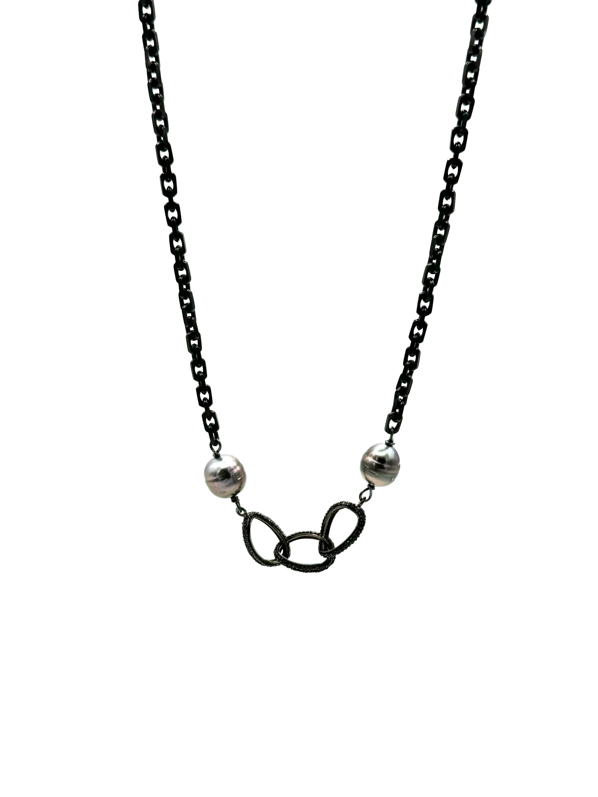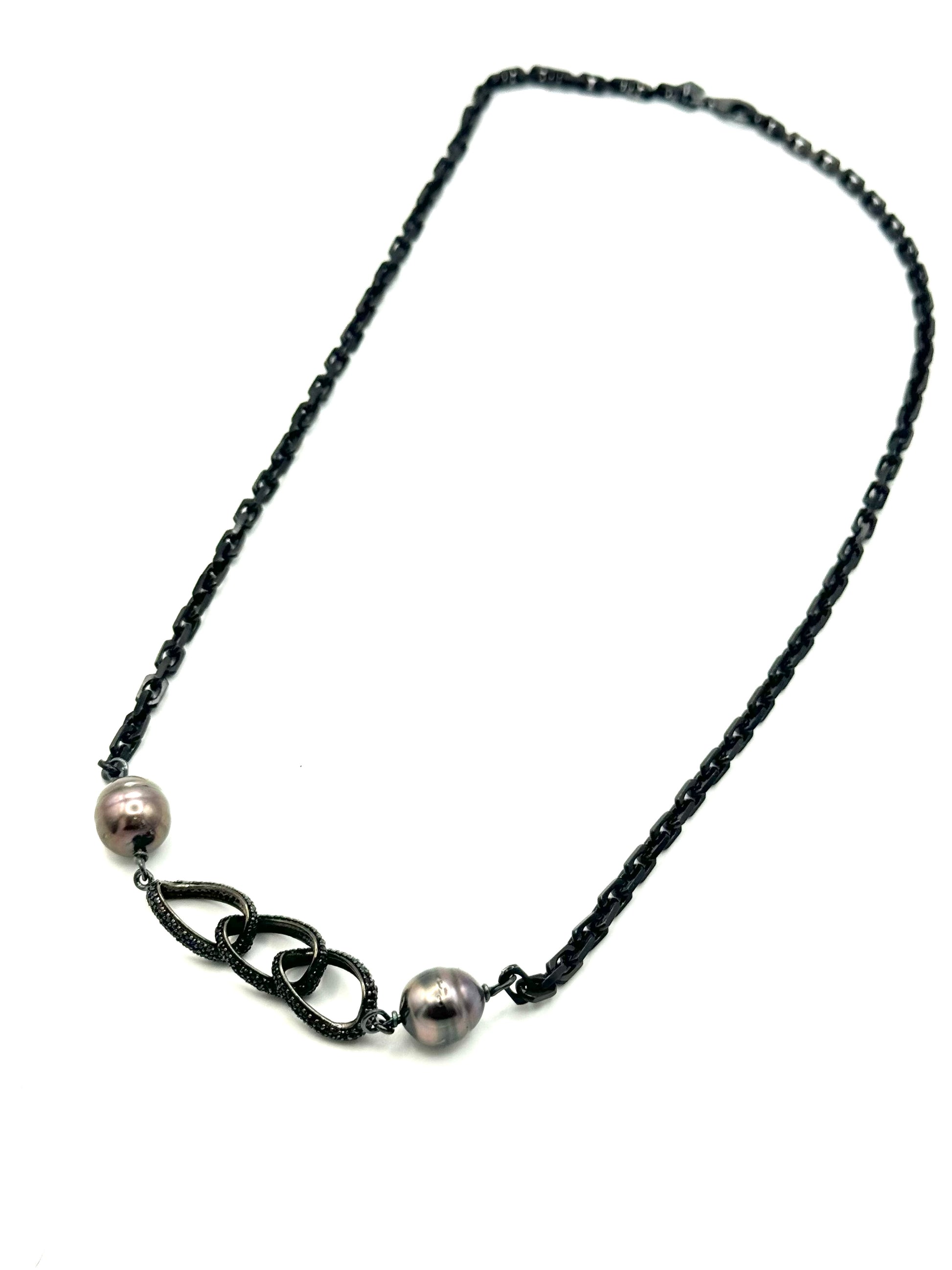 11.5mm Tahitian Pearls and Black Spinel Link Necklace