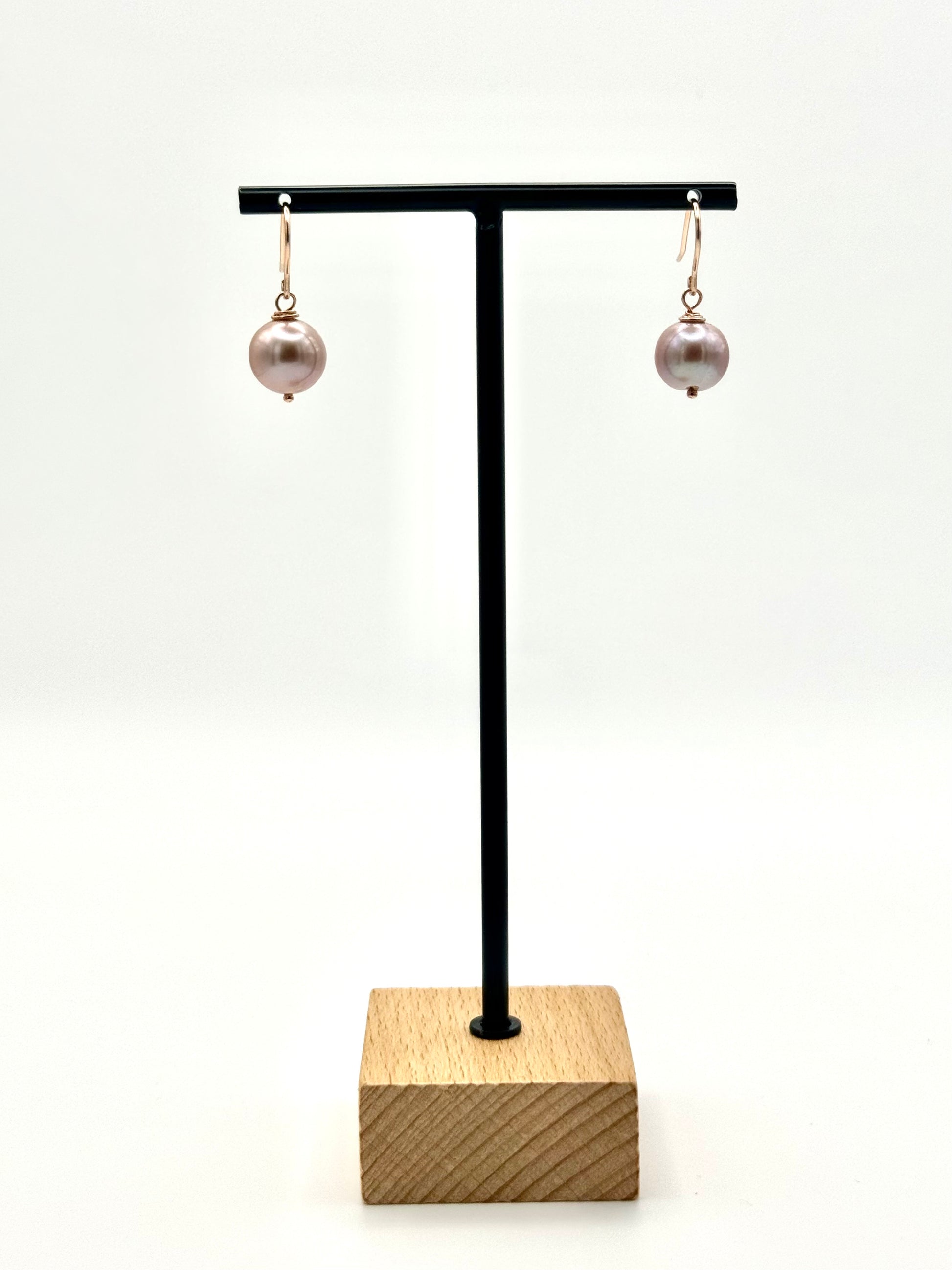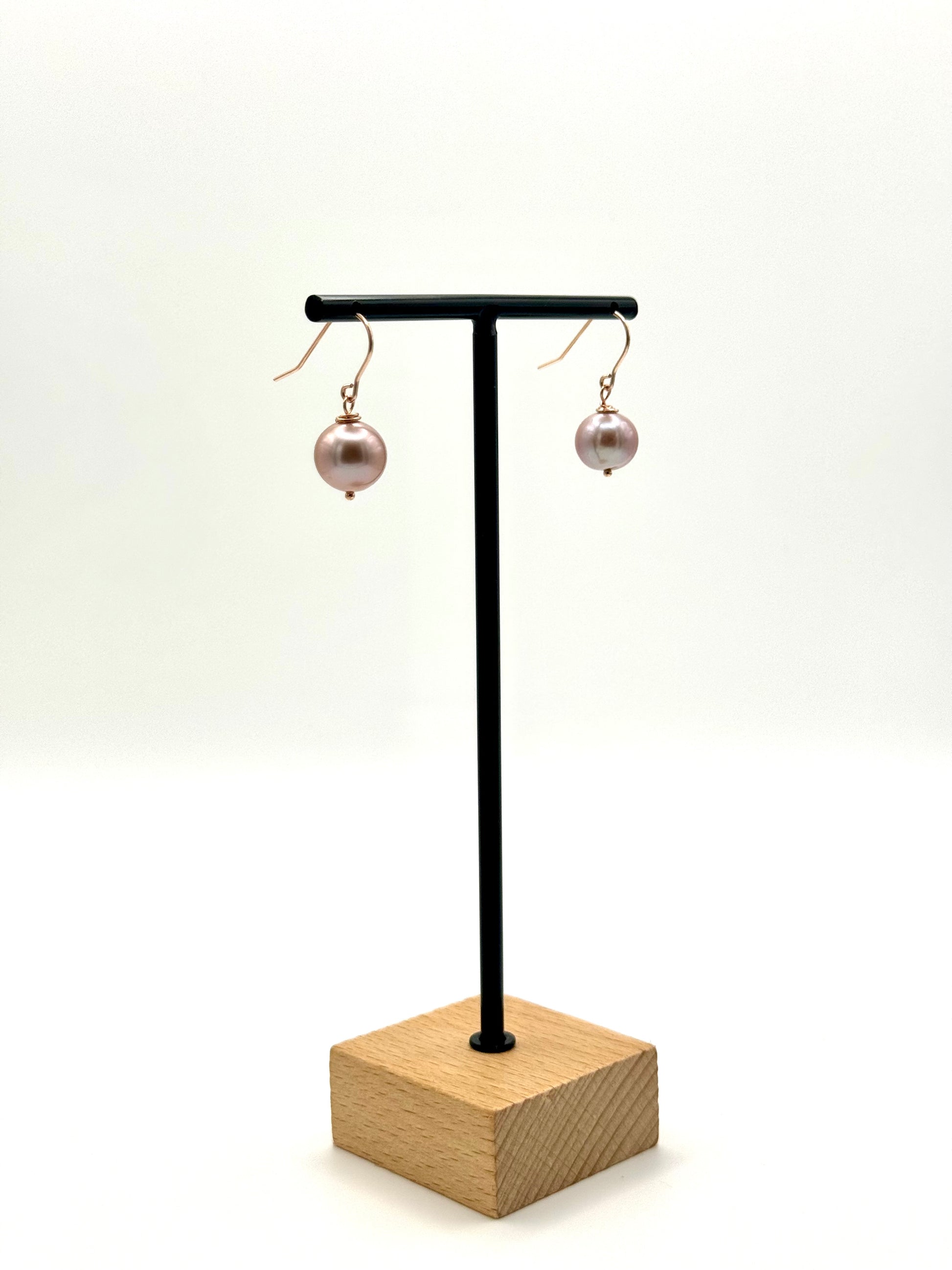 11mm Pink Edison Pearl Rose Gold French Earwire Earrings