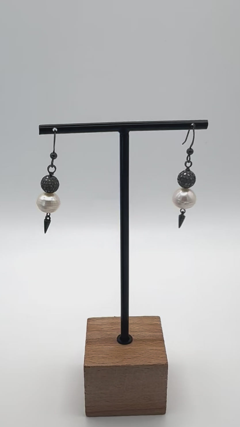 Modern White Baroque Pearl and Diamond Dangle Earrings