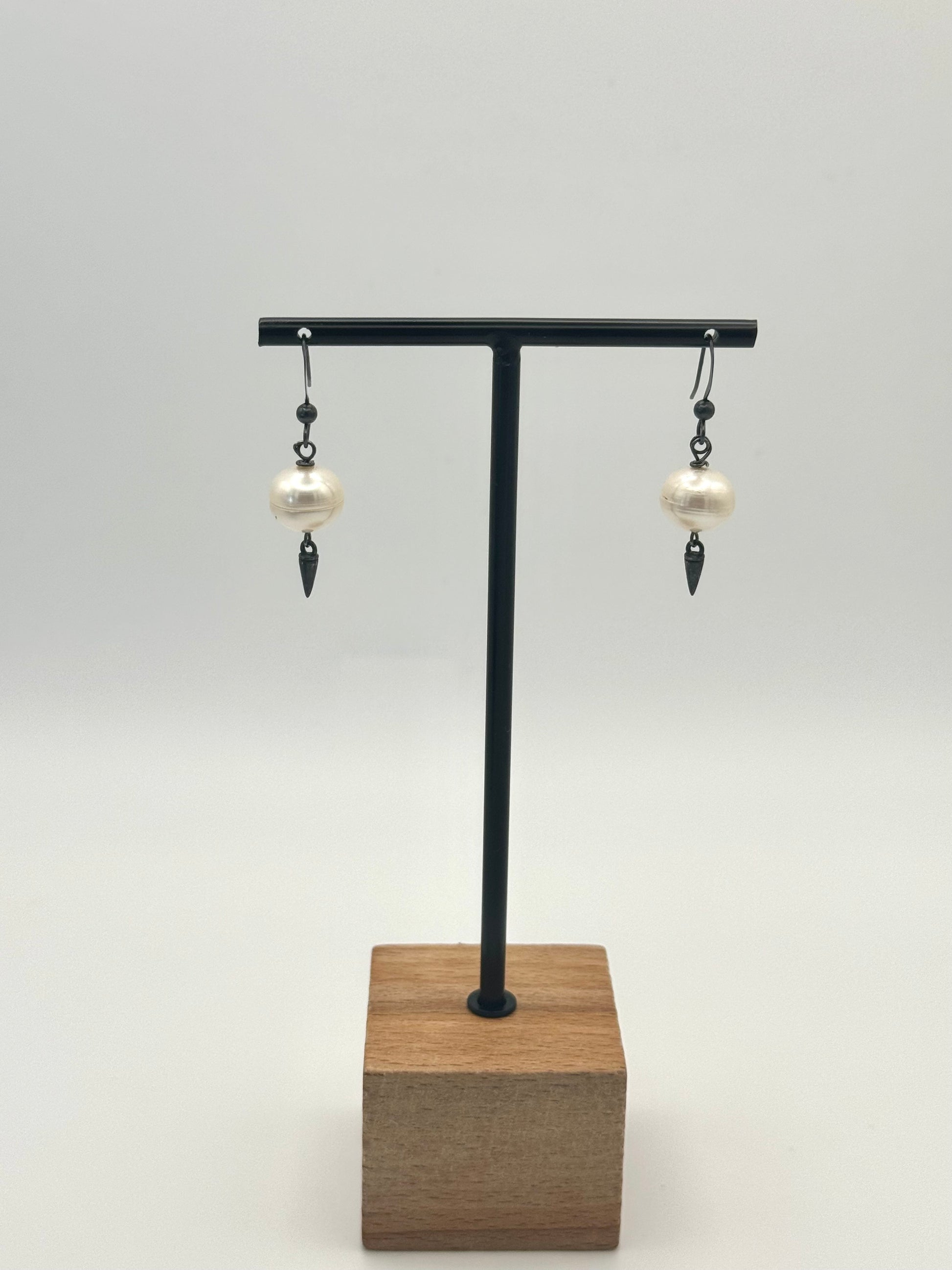 11mm White Potato Freshwayer Pearl and Spike Earrings