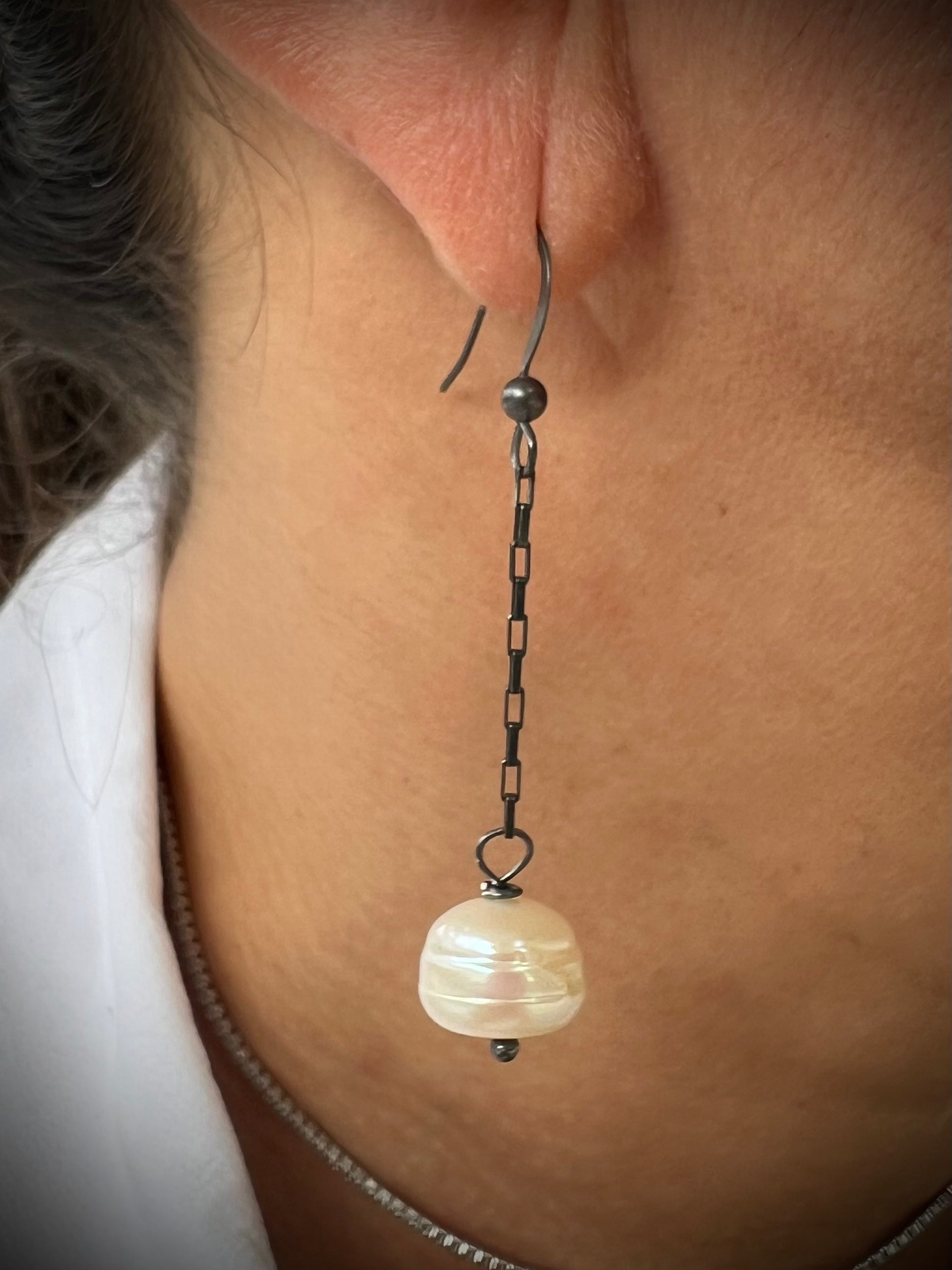 White Potato Freshwater Pearl Drop Earrings