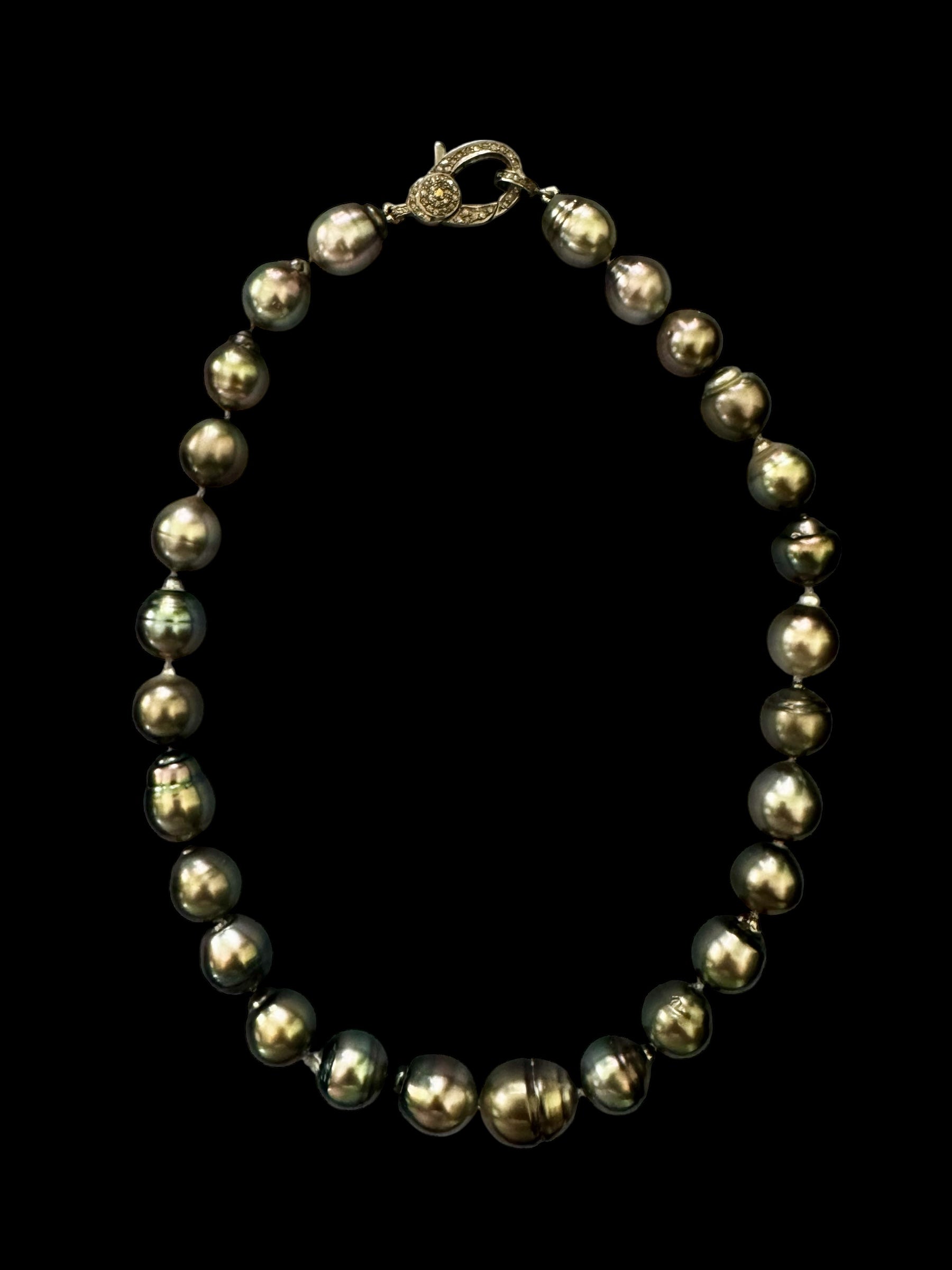 Nocturne – Tahitian Pearl Necklace with Pavé Diamond Oxidized Silver Clasp