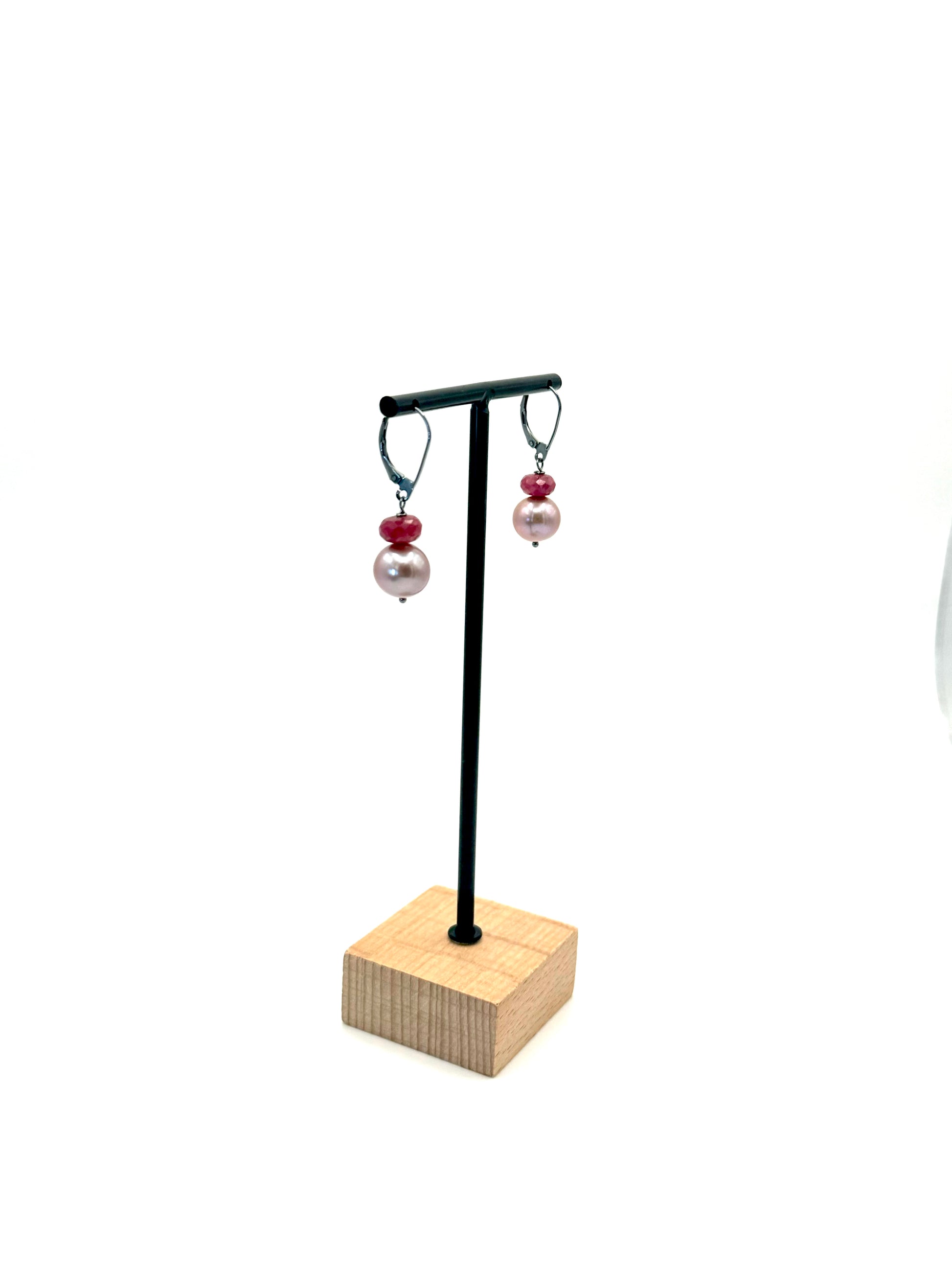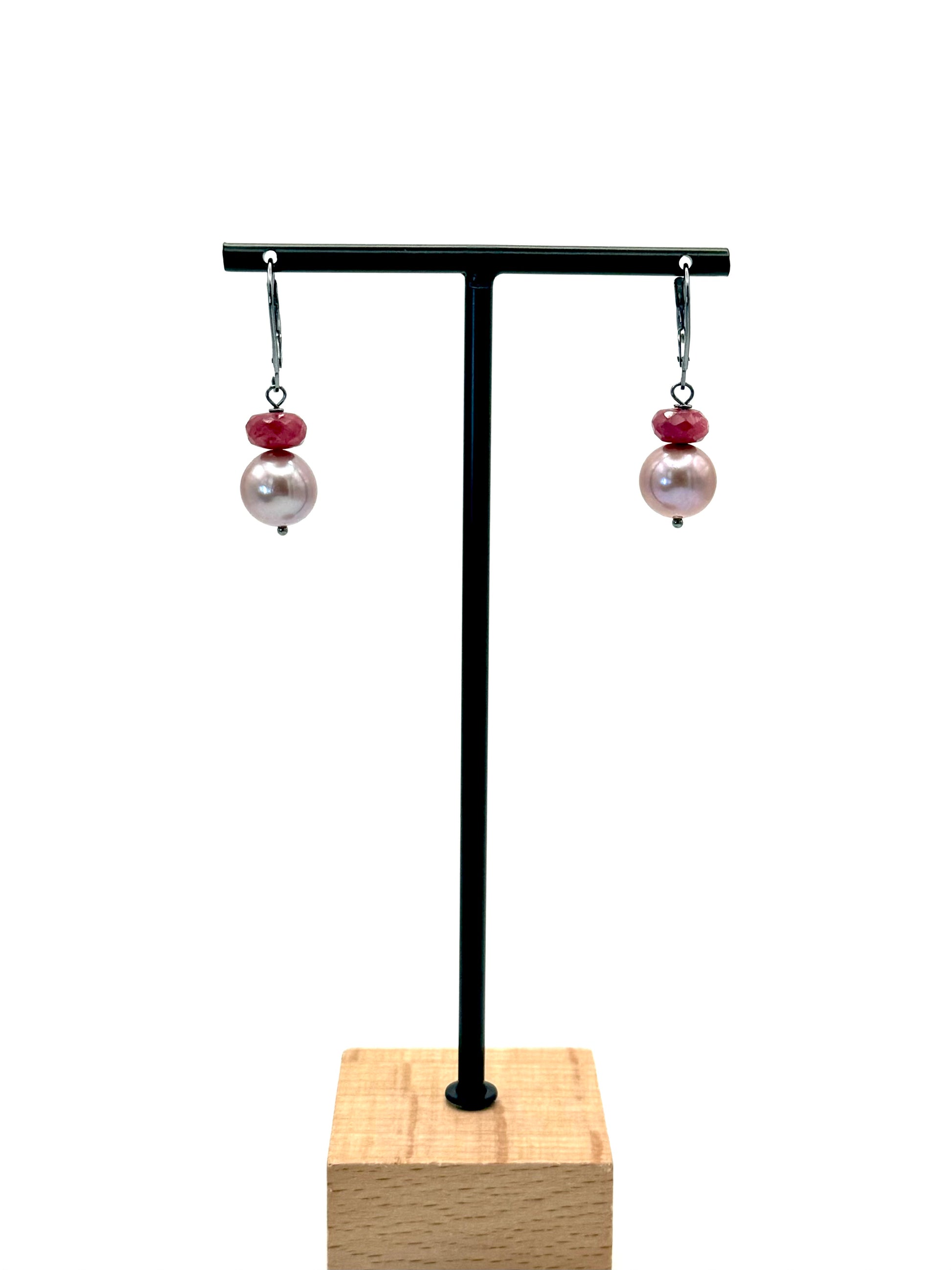 12mm Lavender Edison Pearl Ruby Oxidized Silver Lever Back Earrings