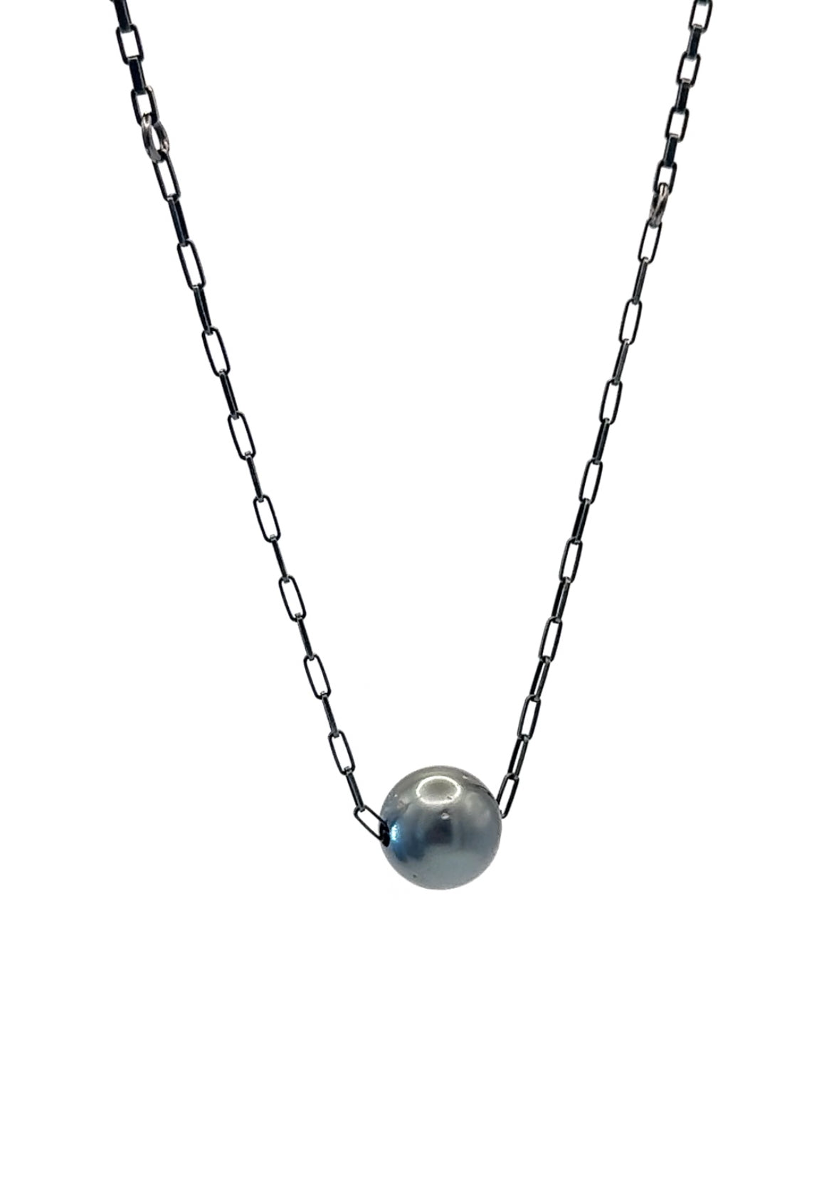 15.8mm Tahitian Pearl on Oxidized Silver Box Chain Necklace