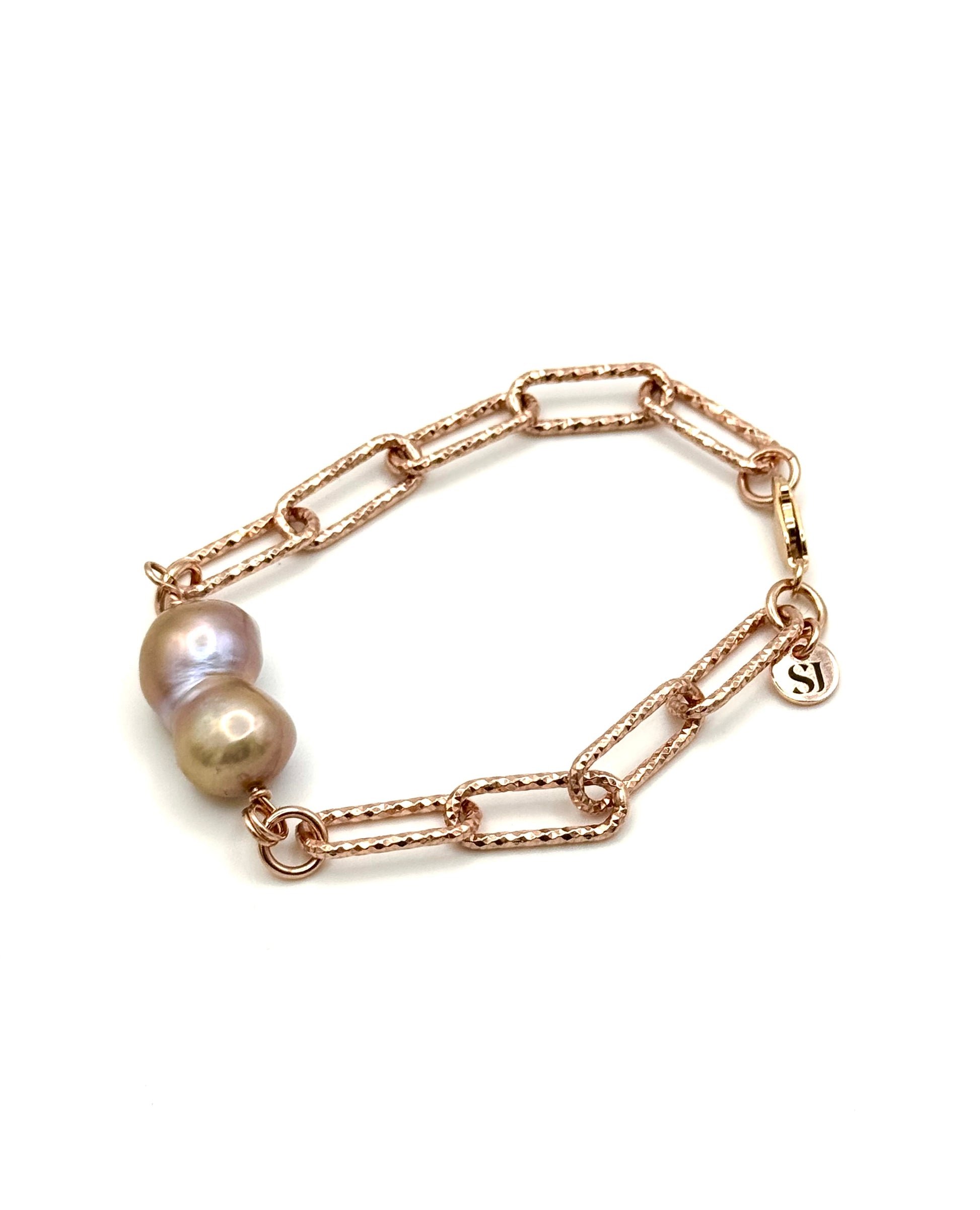 Transform your style with our 15mm Natural Color Peanut Pearl Rose Gold Bracelet! The unique shape and hue of the pearl paired with the bold rose gold creates a daring and adventurous look. Perfect for those who aren't afraid to take risks with their fashion.