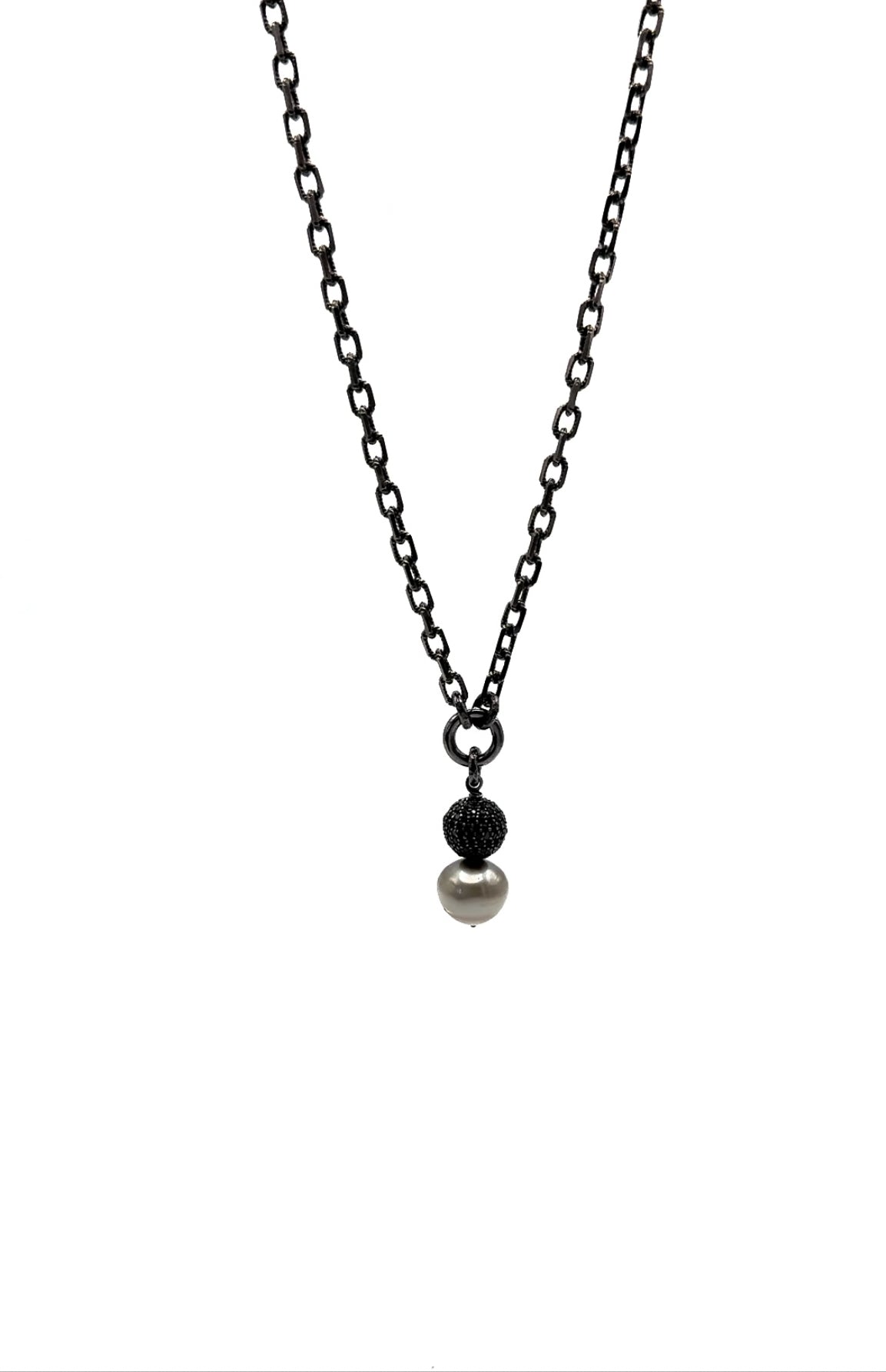 Indulge in the luxurious and versatile style of our 15x13mm Baroque Tahitian Pearl and Black Spinel Necklace! Crafted with unisex appeal, this exquisite piece is perfect for anyone seeking to make a bold and elegant fashion statement. Feel confident and fashionable with this stunning necklace around your neck.