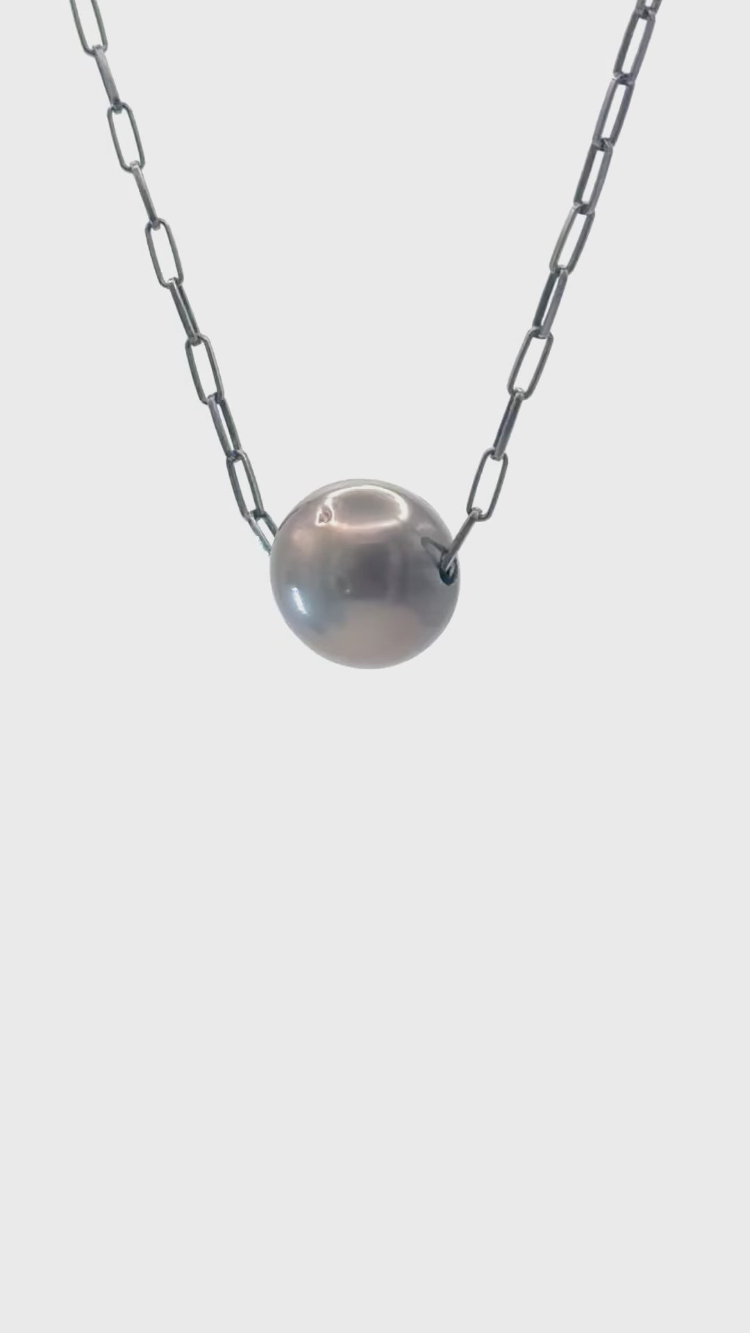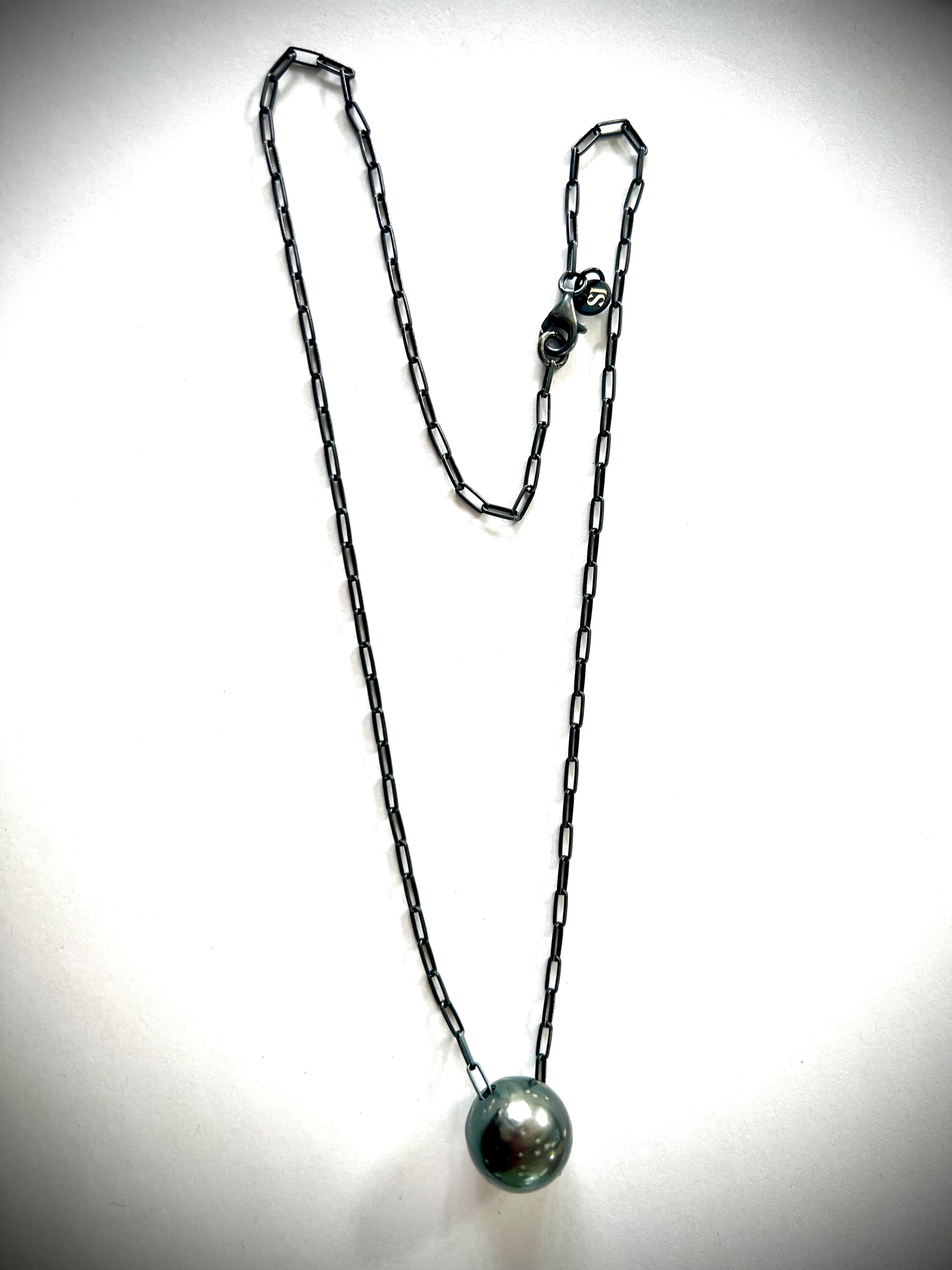 Modern 16mm Tahitian Pearl on Oxidized Silver Necklace