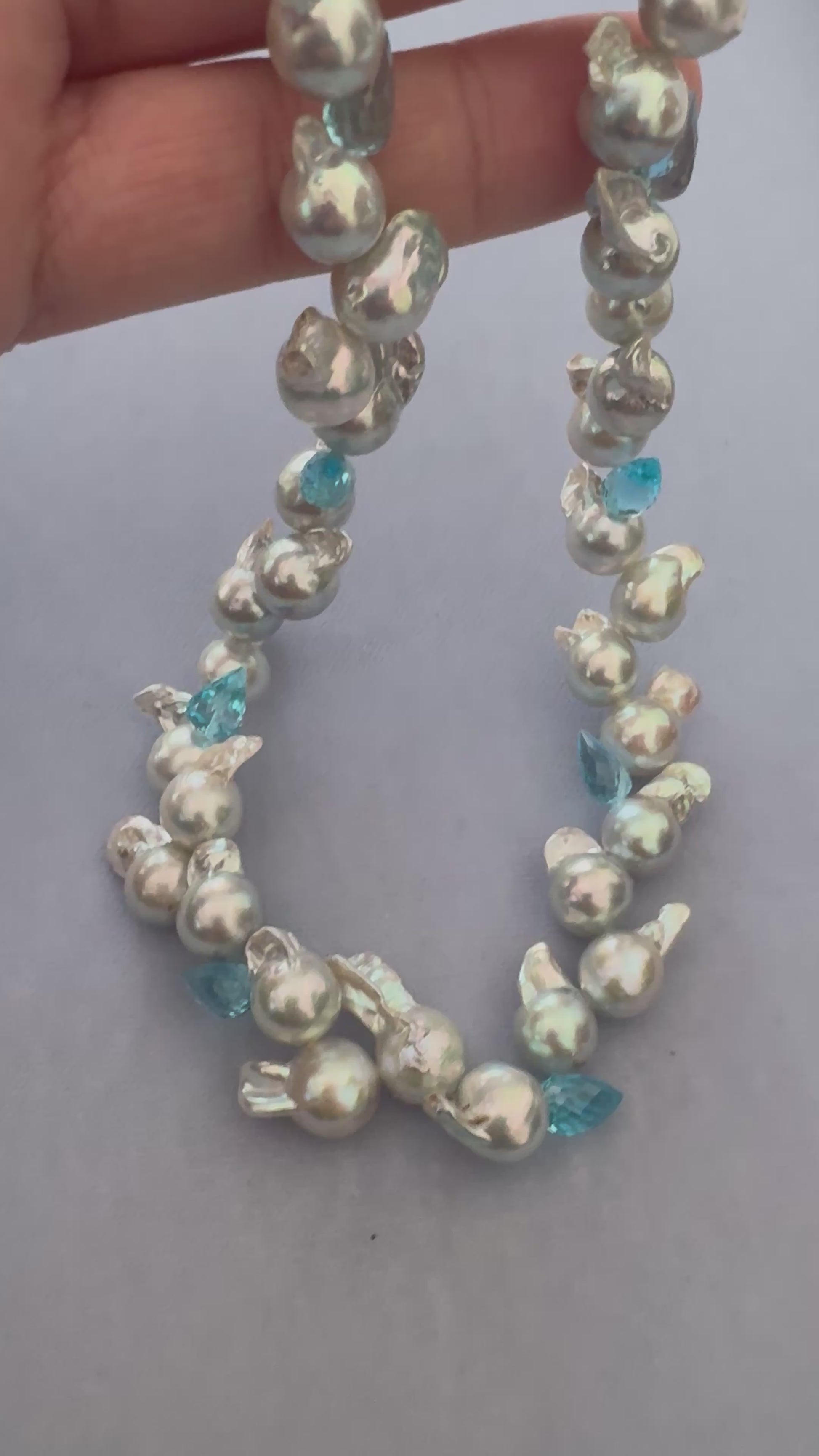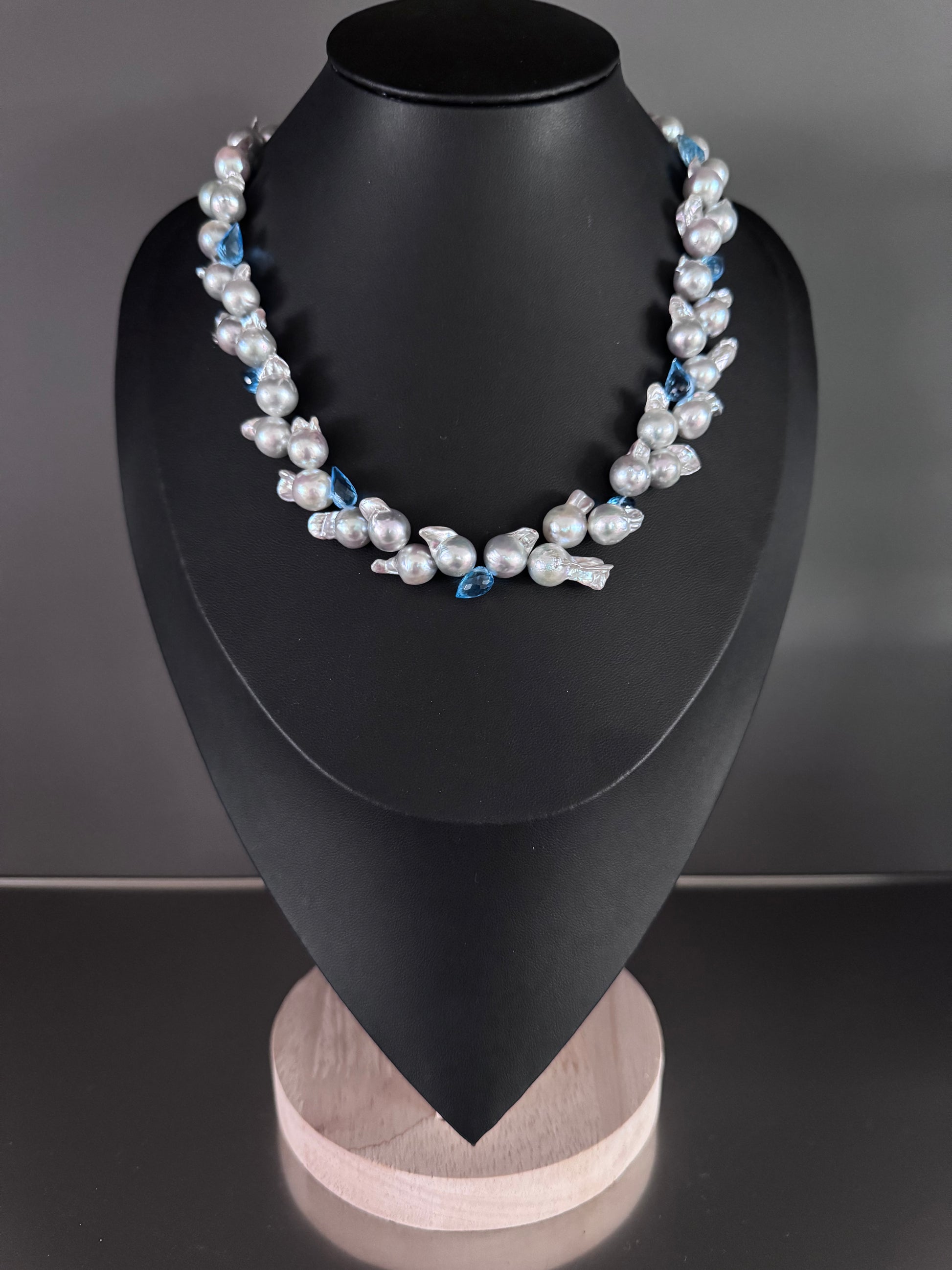 Blue Cascade – Baroque Akoya Pearl & Topaz Necklace