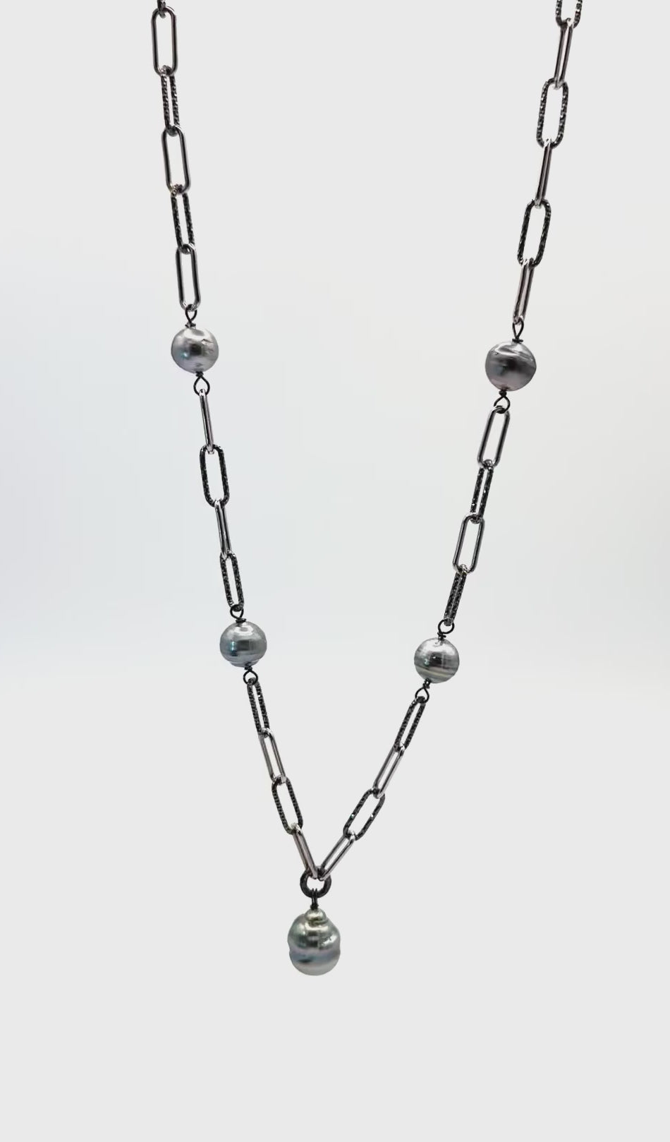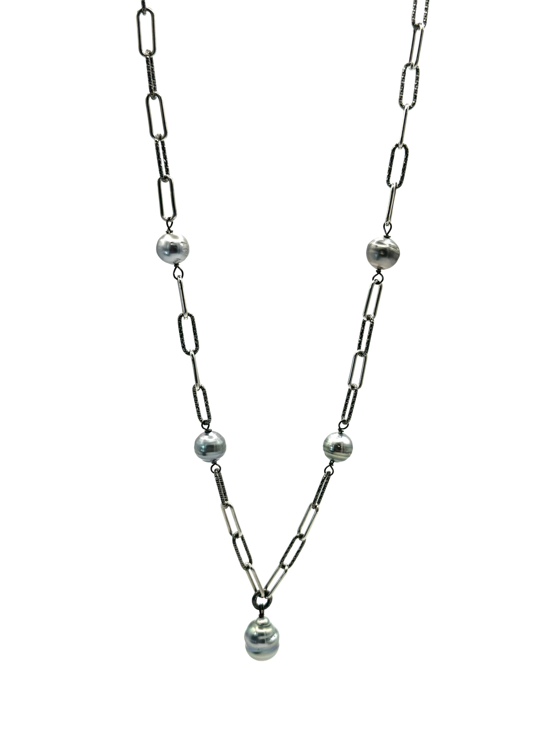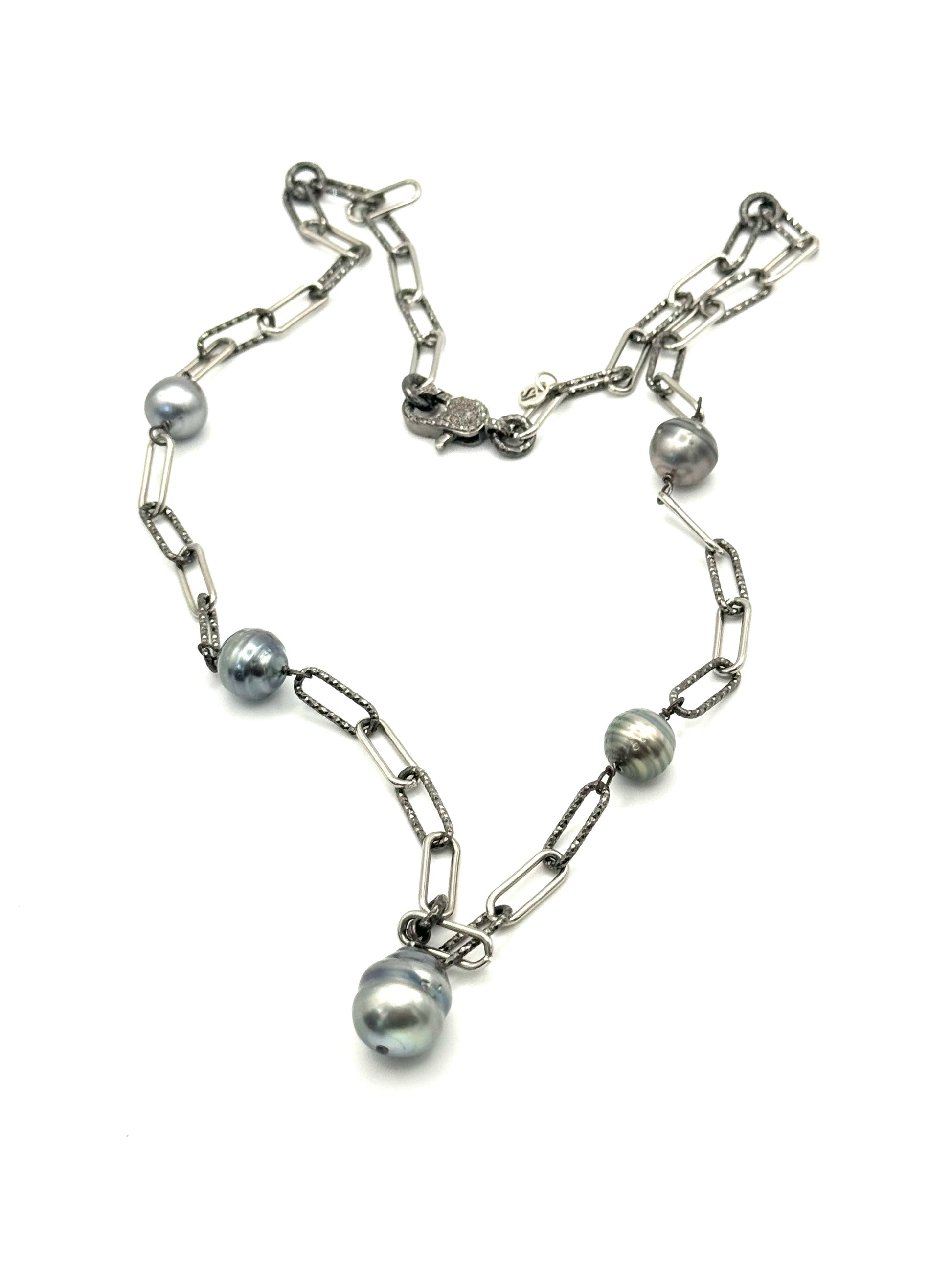Grey Drop Tahitian Pearl Paperclip Necklace