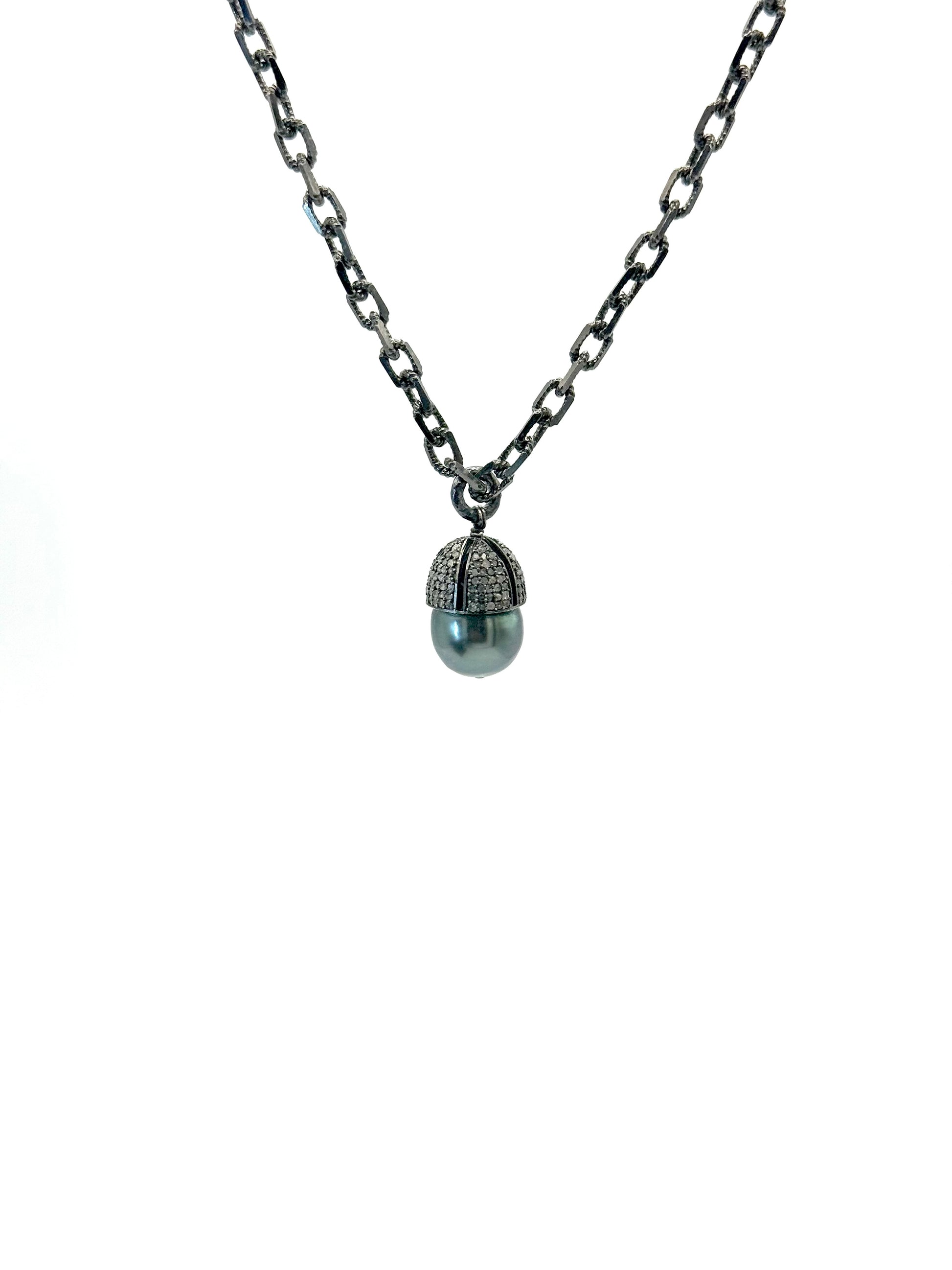 Introducing the captivating Grey Tahitian Pearl and Diamond Pendant Necklace. Crafted with modern unisex luxury in mind, this necklace exudes sophistication and exclusivity. Enhance any outfit with its elegant design and luxurious allure. Discover your inner sense of style with this timeless piece.