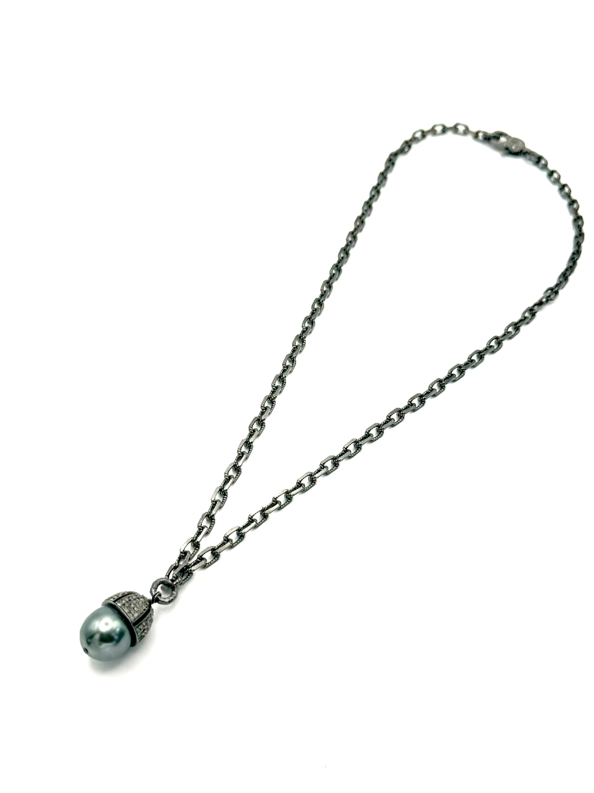 Grey Tahitian Pearl and Diamond Pendant Necklace