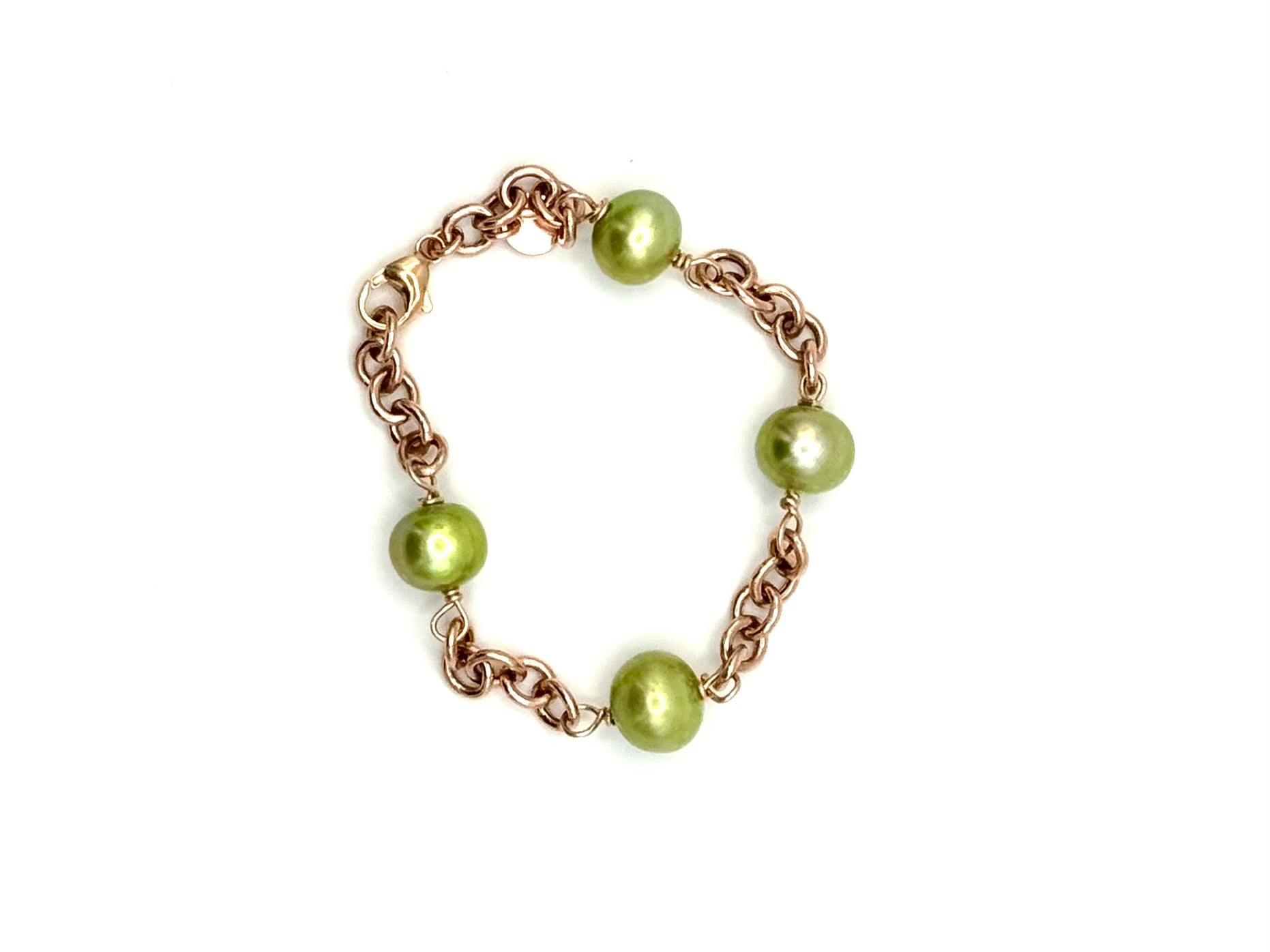Light Green Freshwater Pearls on Rose Gold Station Bracelet