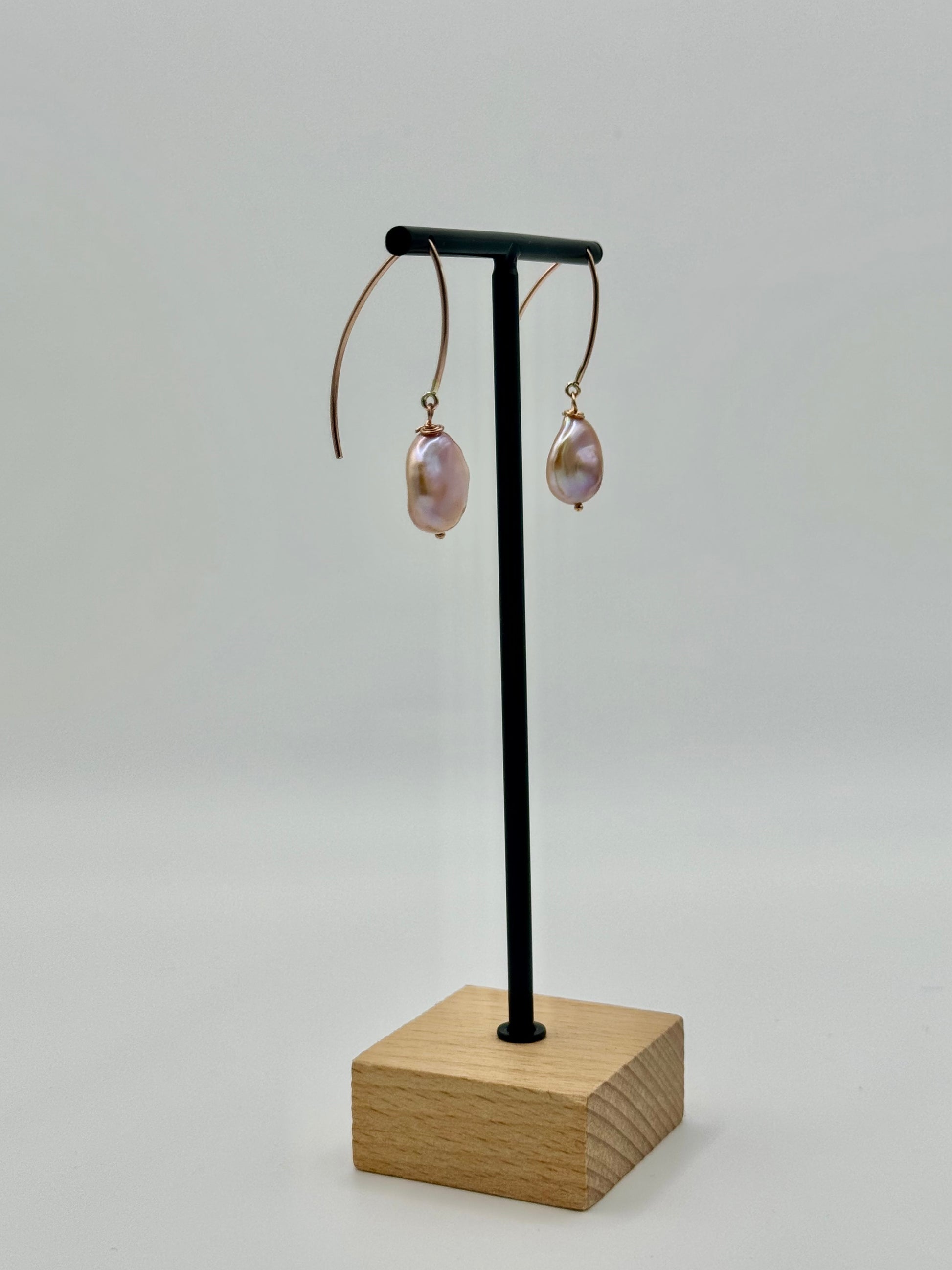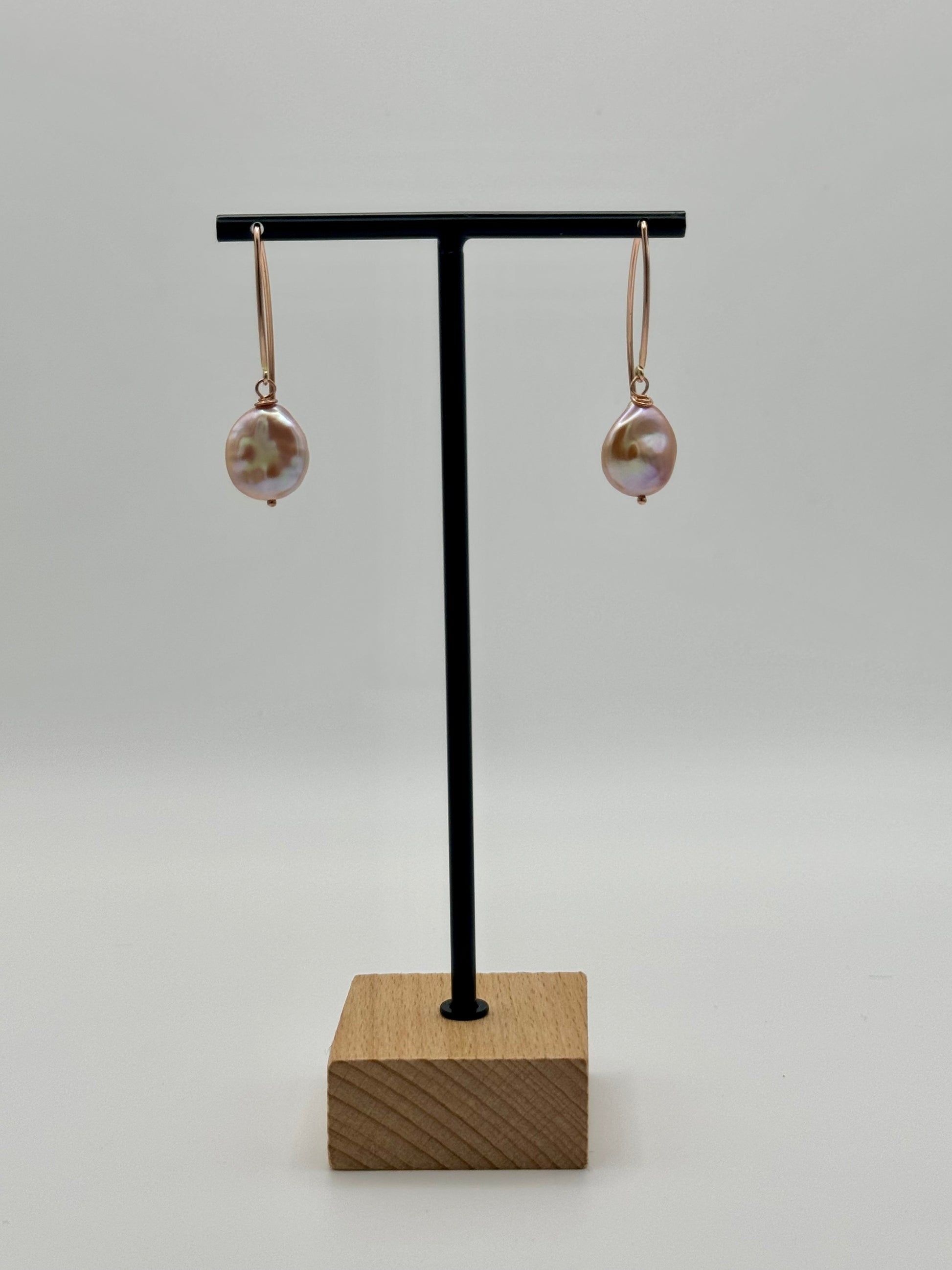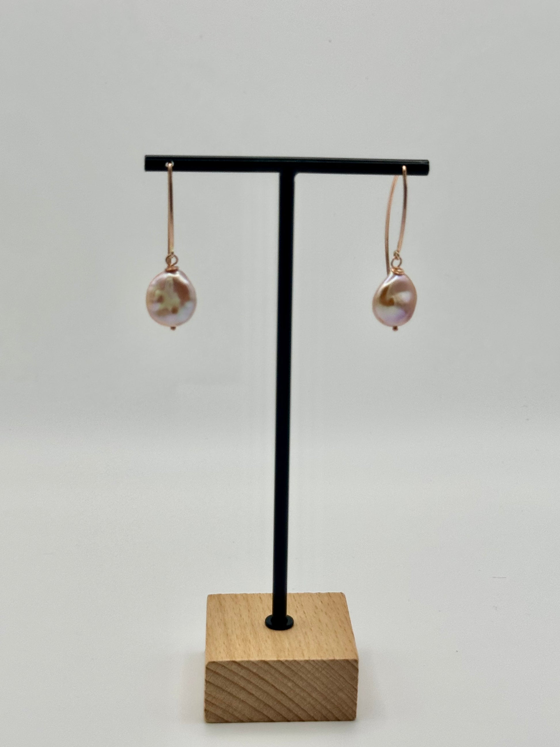 Natural Freshwater Coin Pearl Rose Gold Earring