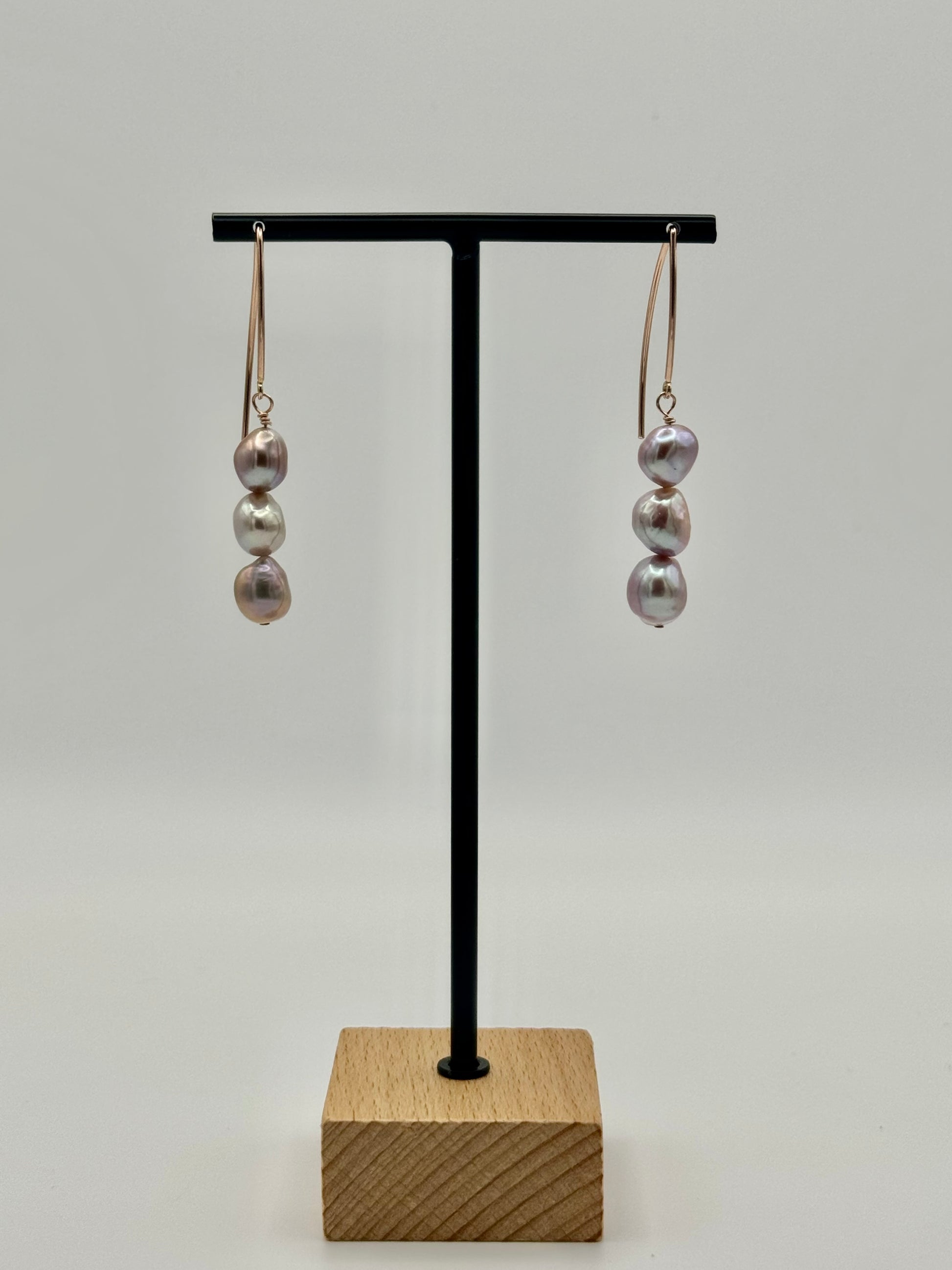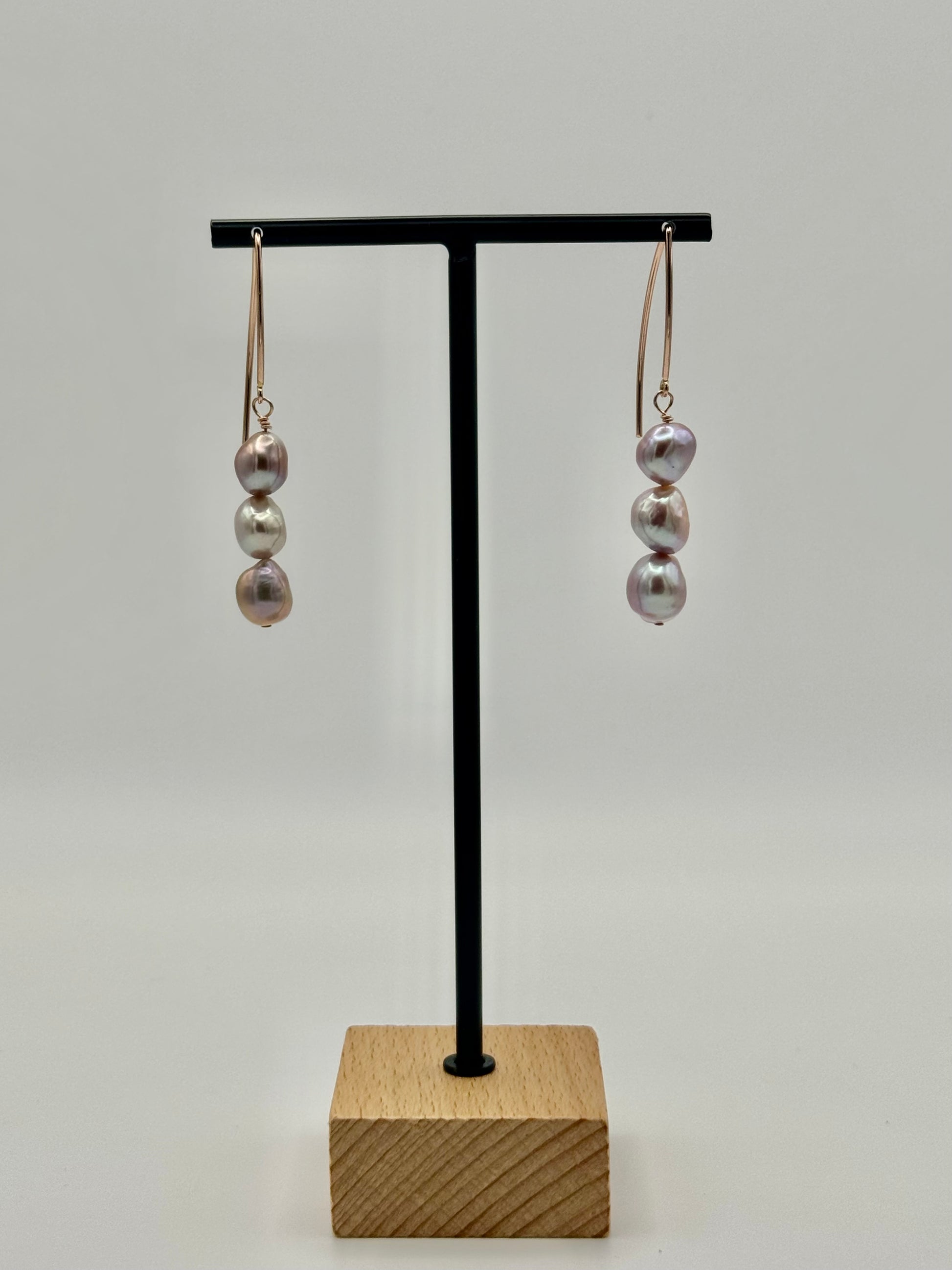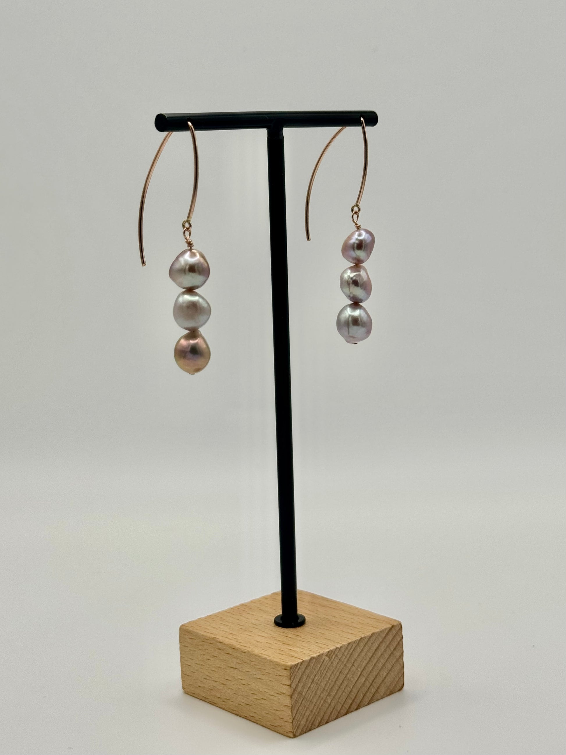 Natural Pinky Freshwater Nugget Pearl Rose Gold Earrings