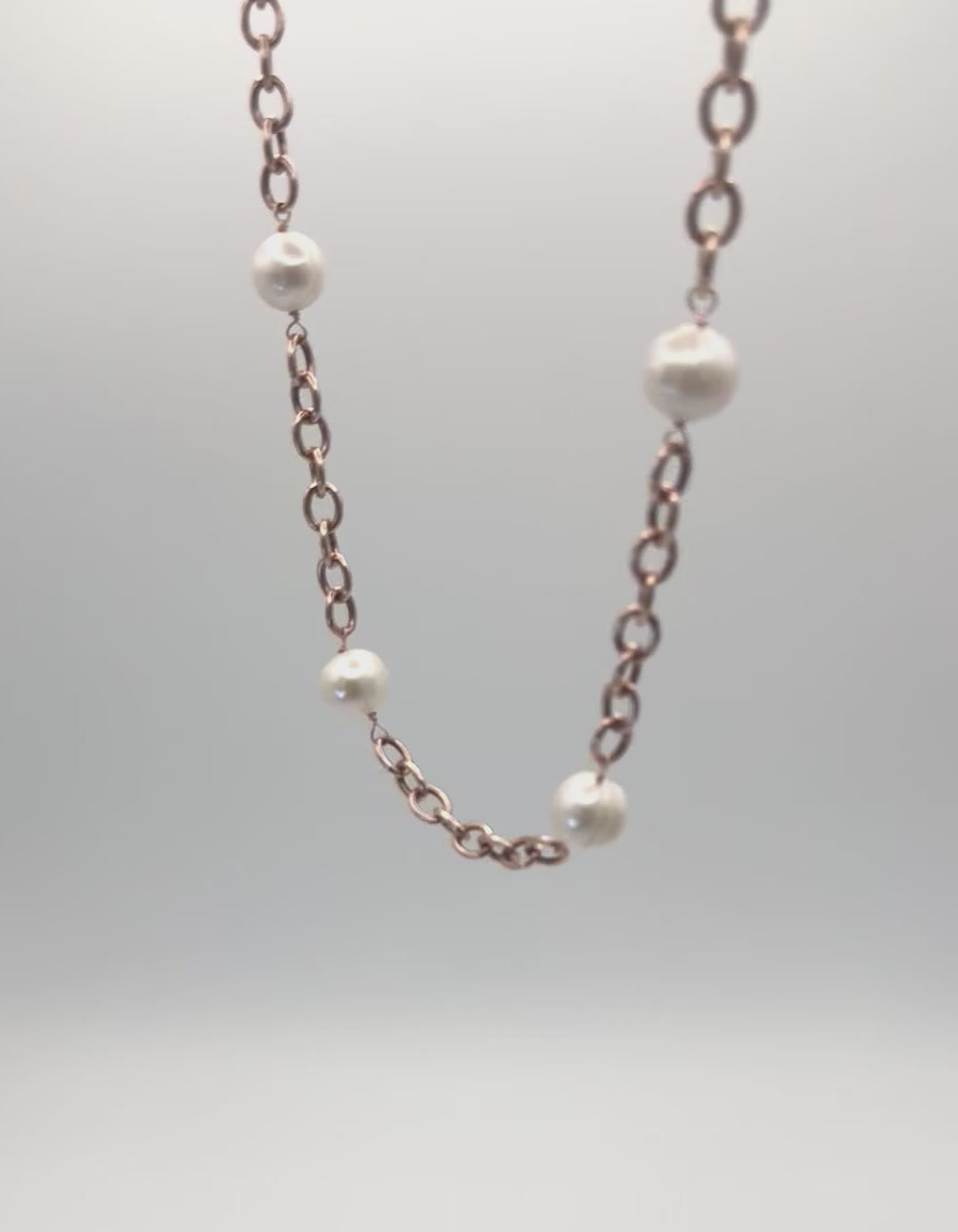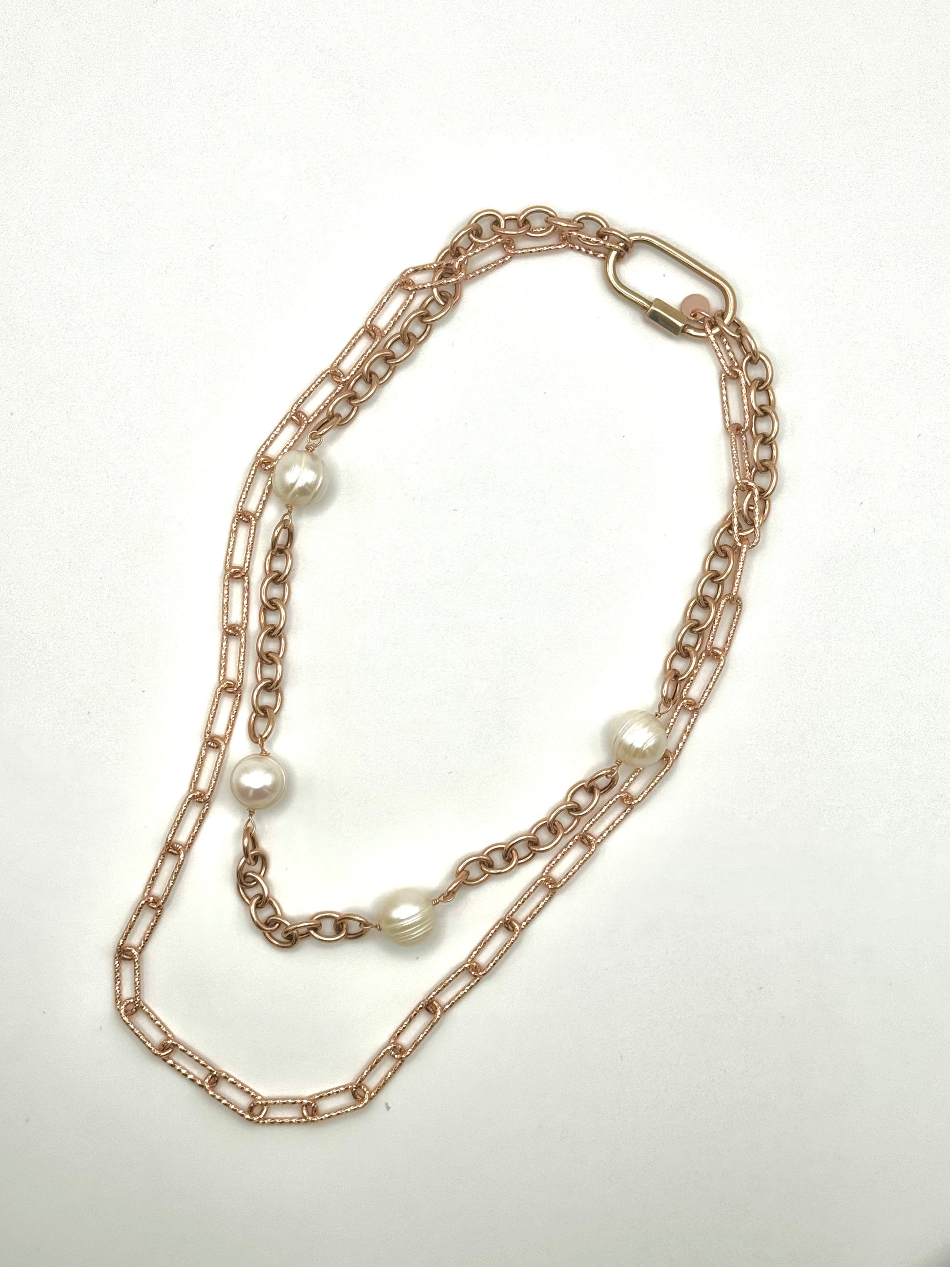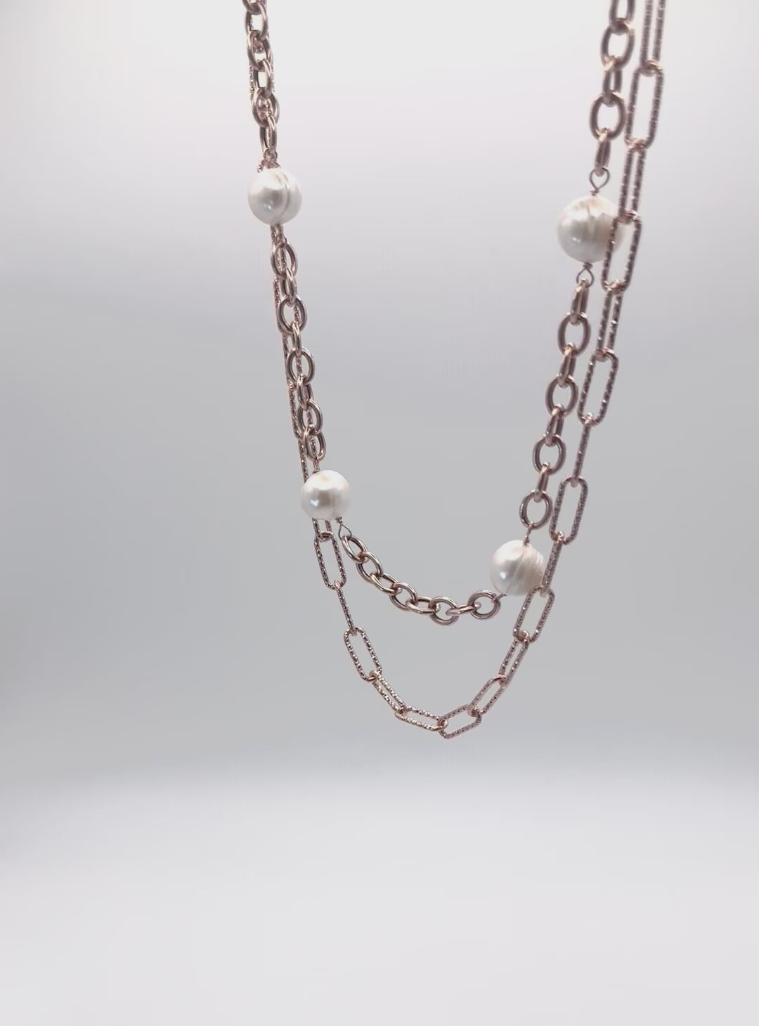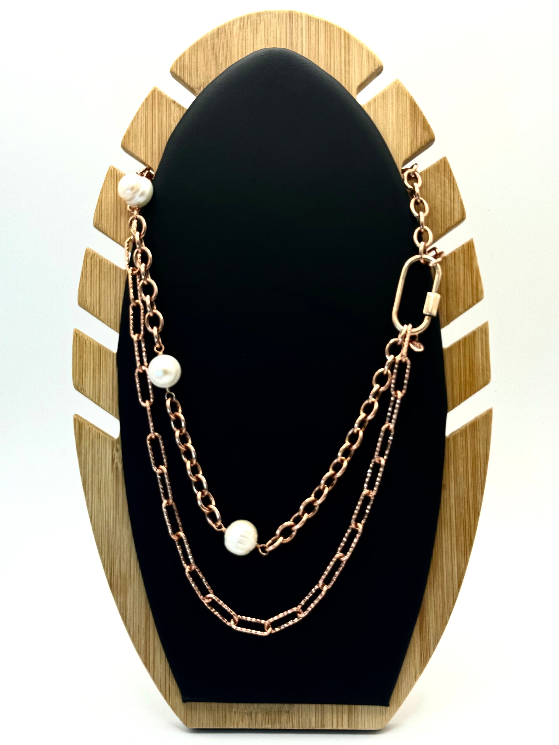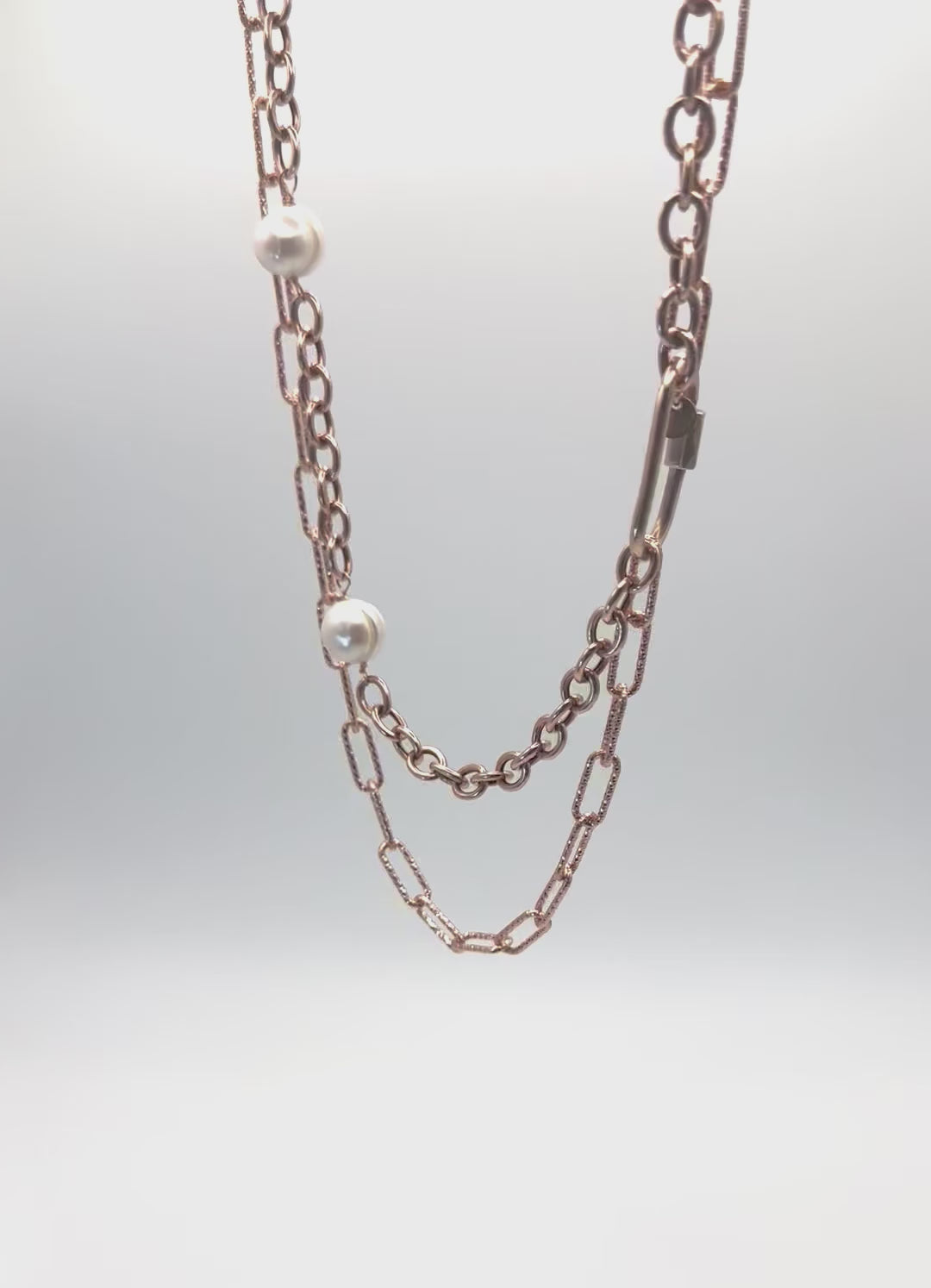 Rose Gold Cascade Necklace: Versatile Necklace with White Pearls on Two Layered Chains