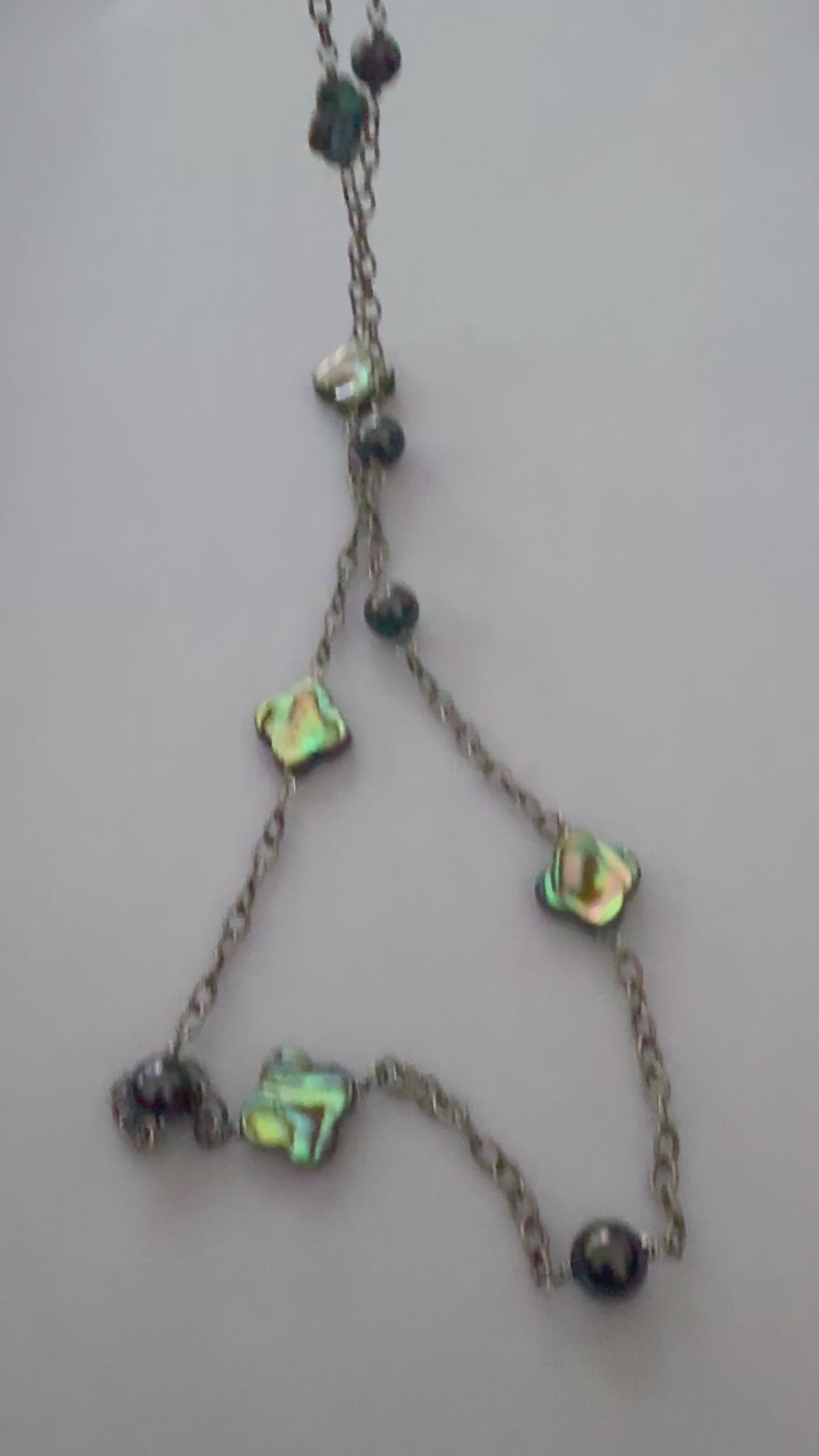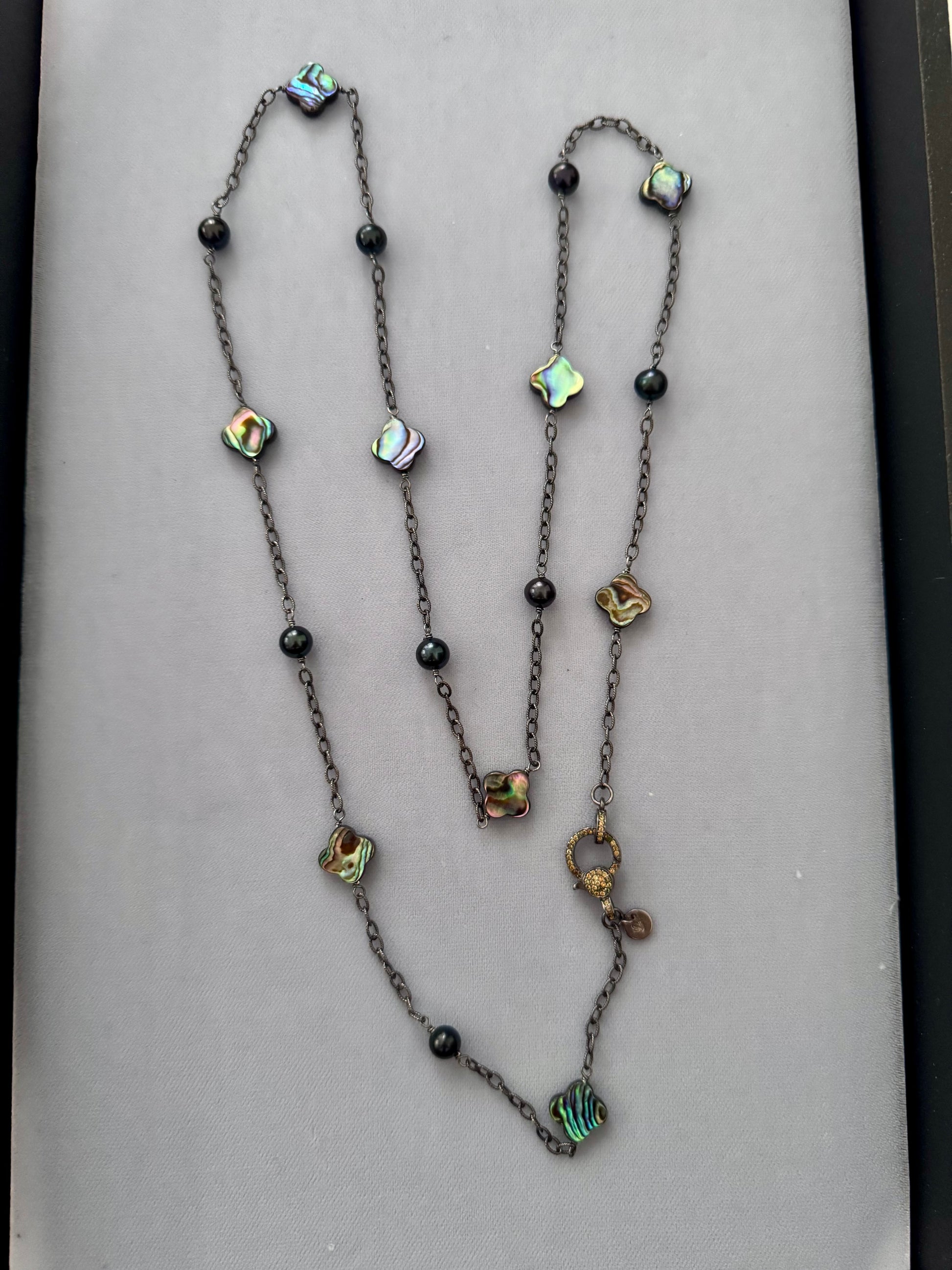 Shadow Bloom – Abalone & Black Pearl Station Necklace