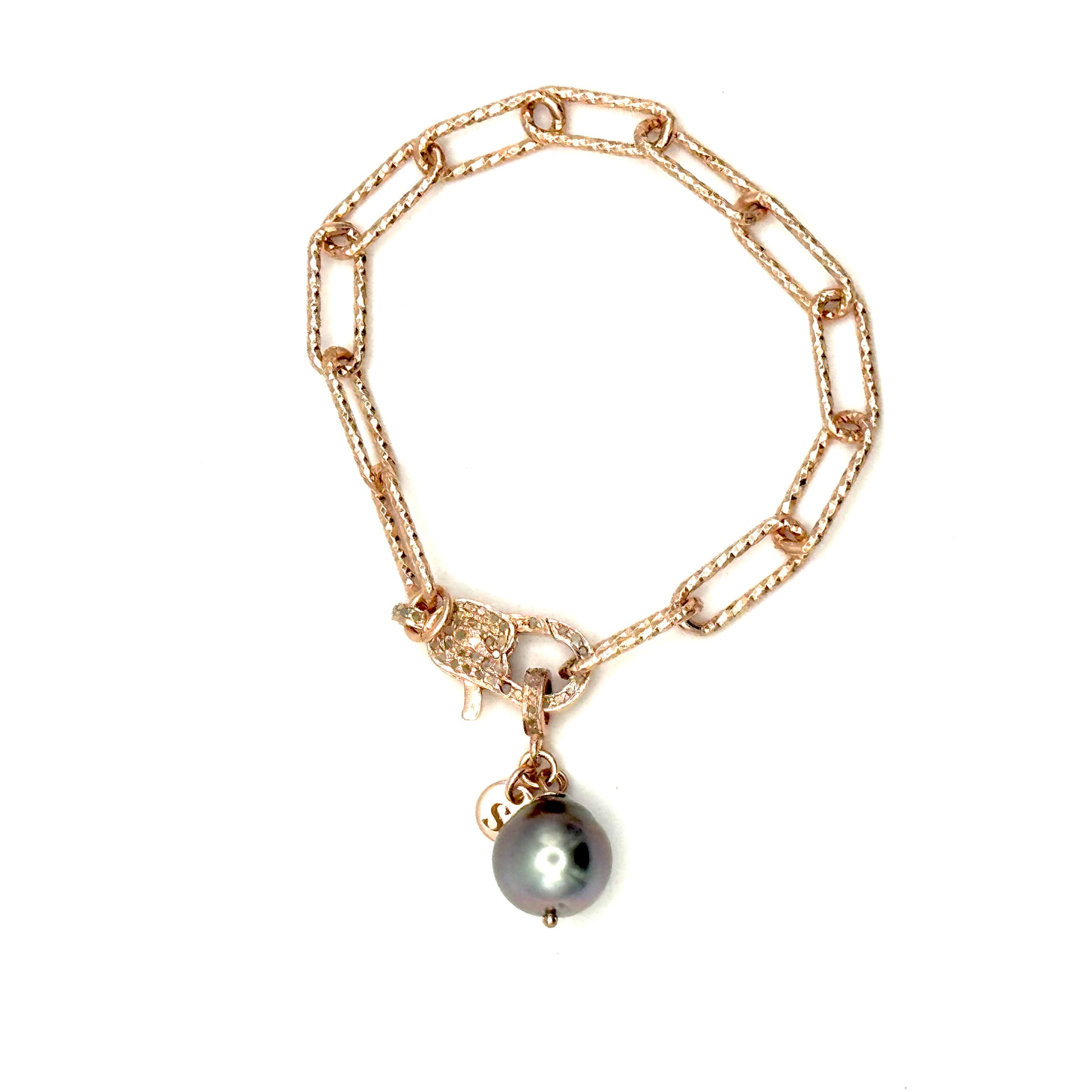 Tahitian Pearl Diamond Clasp Rose Gold Bracelet