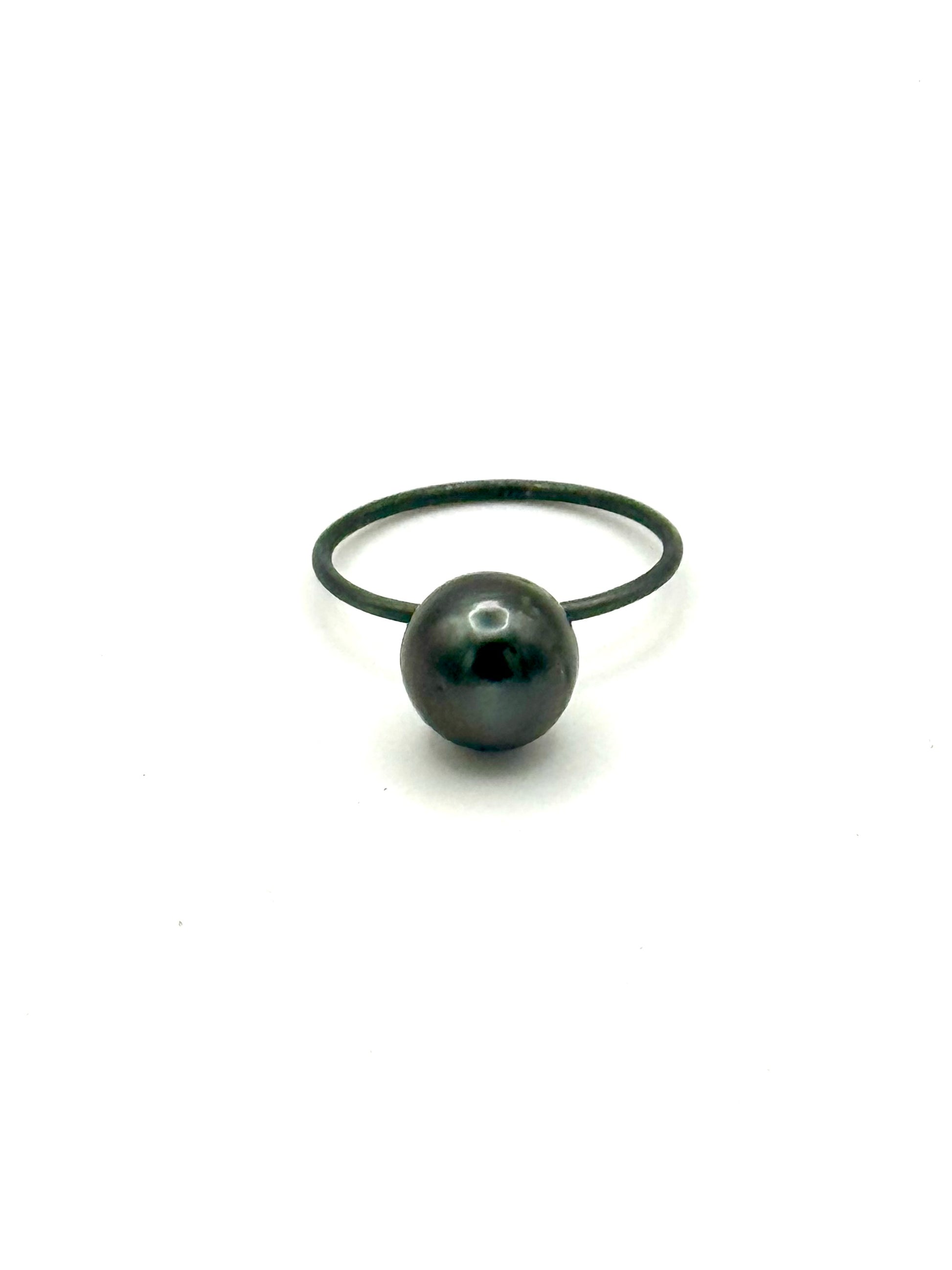 8-9mm Tahitian Pearl Oxidized Silver Ring