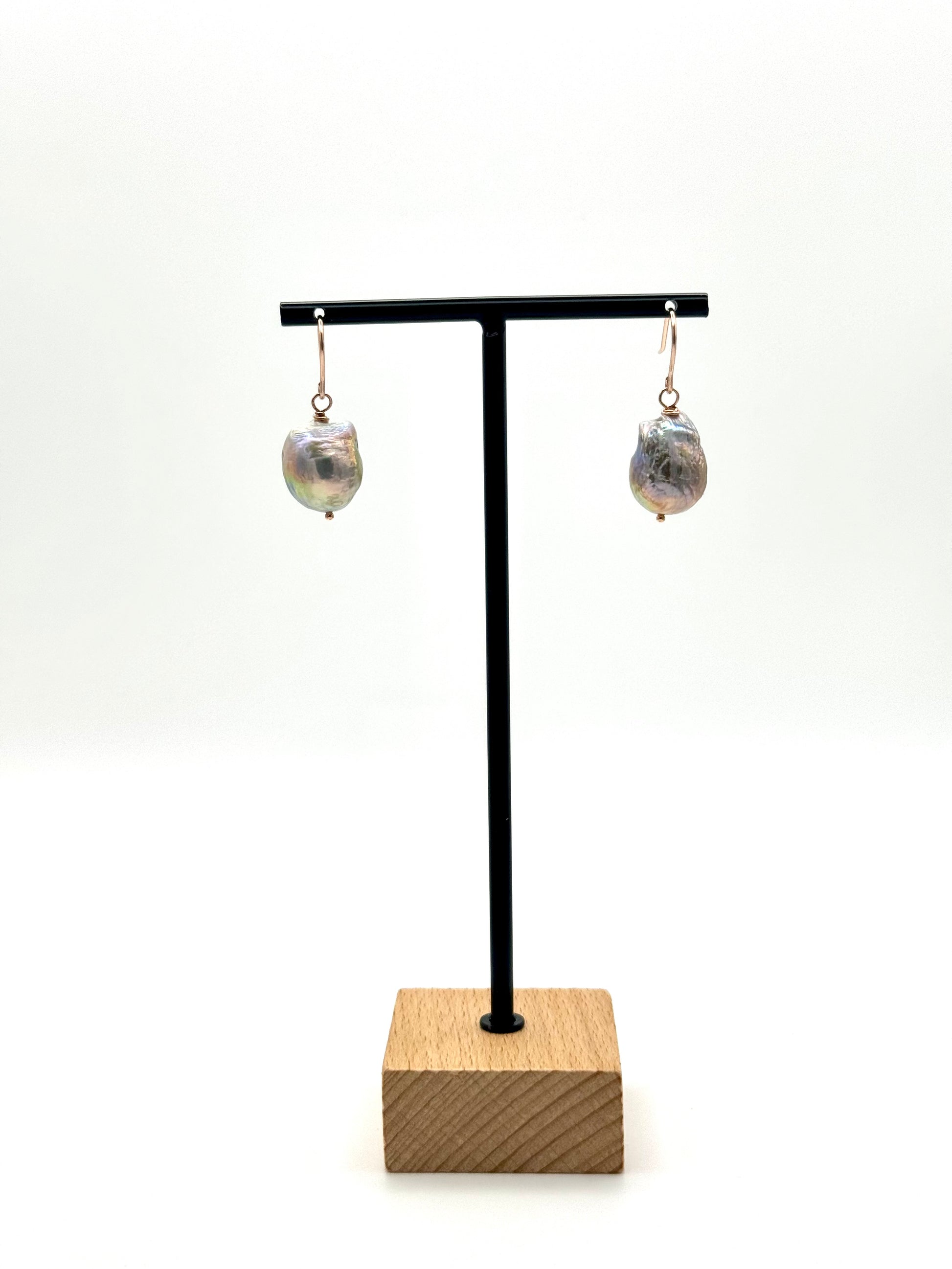 13mm Metallic Baroque Freshwater Pearl Rose Gold Earrings