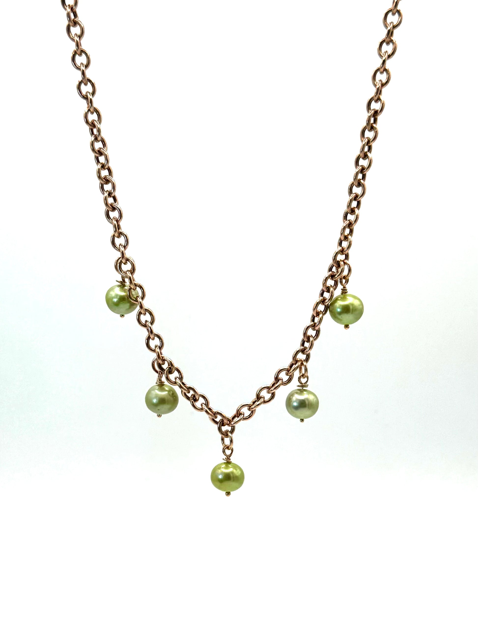 Verdant Radiance Necklace: Rose Gold & Light Green Freshwater Pearl