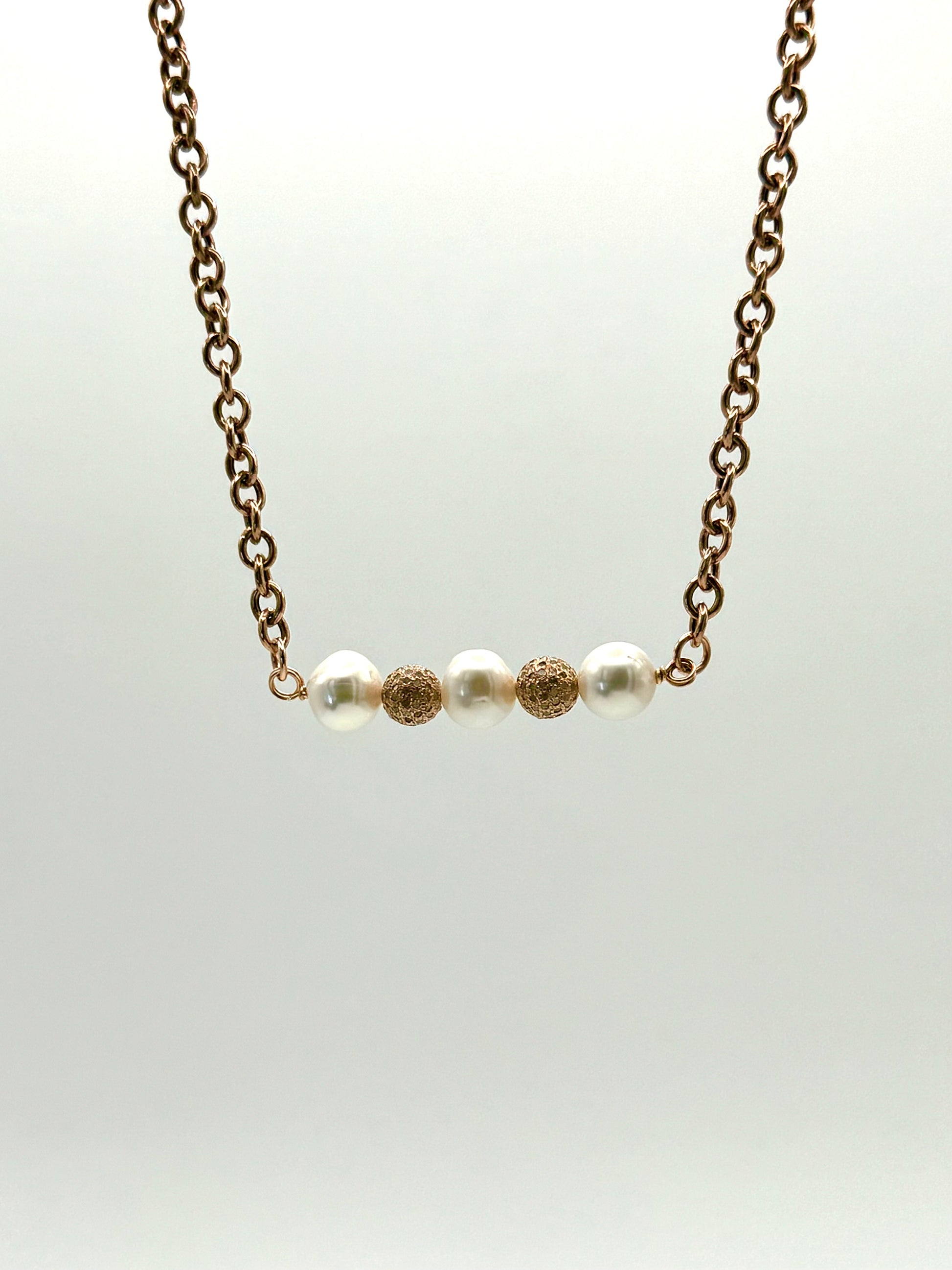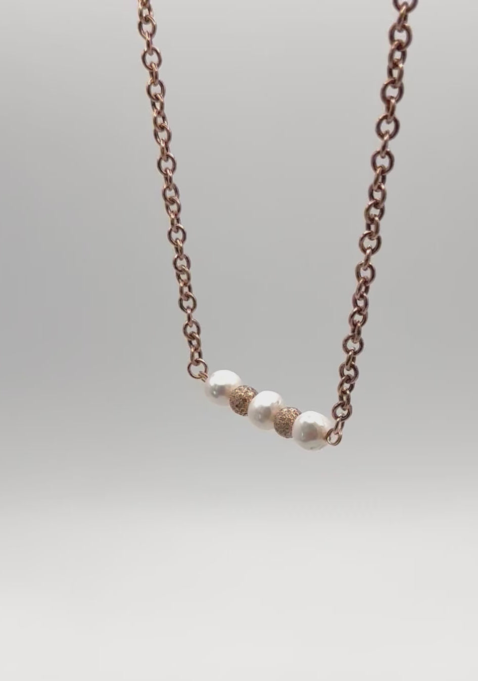 White Sparkle Swing Necklace: White Freshwater Pearls, Rose Gold Diamonds Beads Bar Rose Gold Necklace